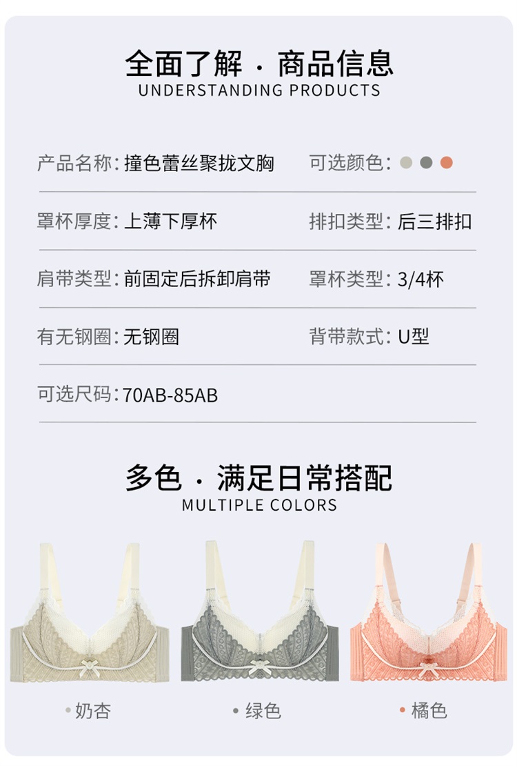 雅黛丽内衣小胸聚拢显大性感蕾丝文胸无钢圈收副乳调整型美背胸罩