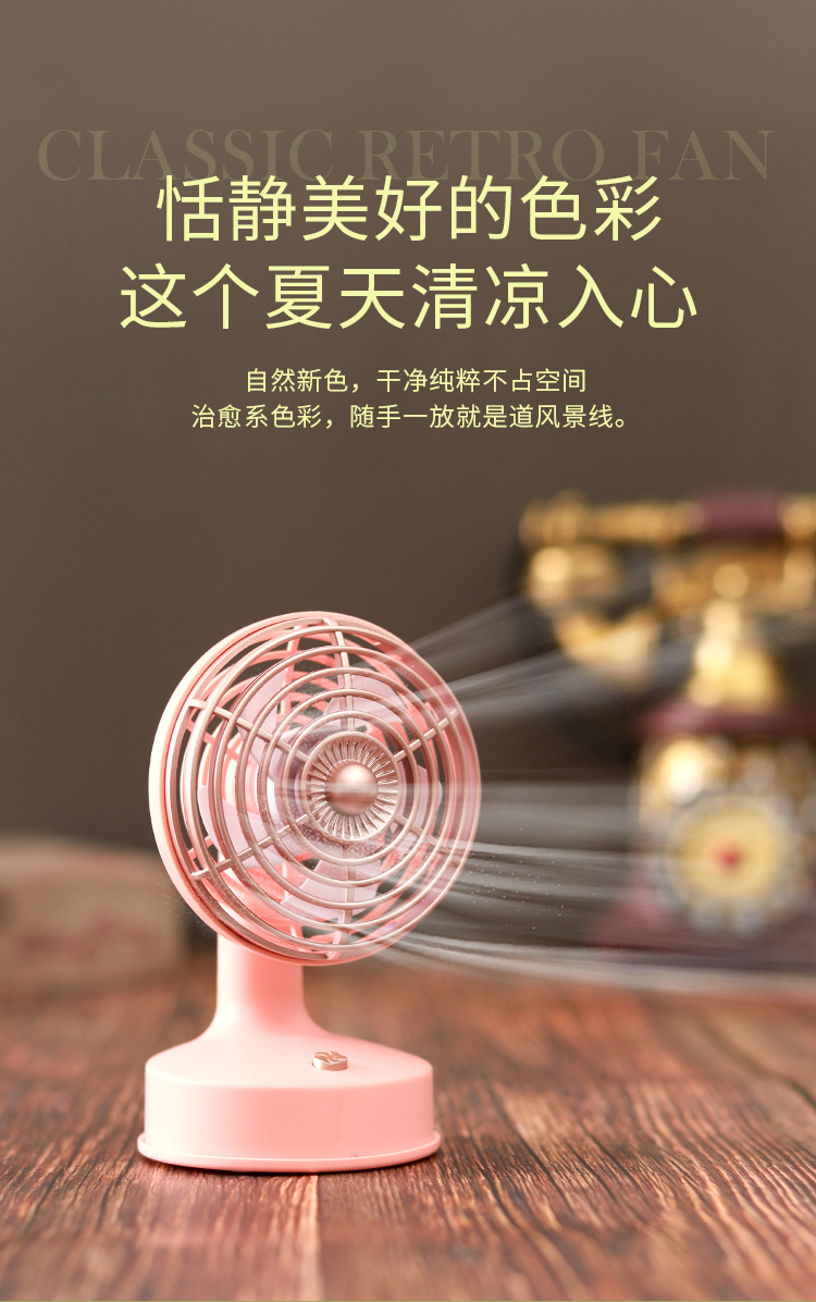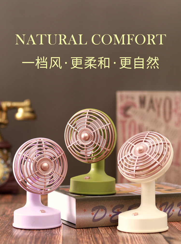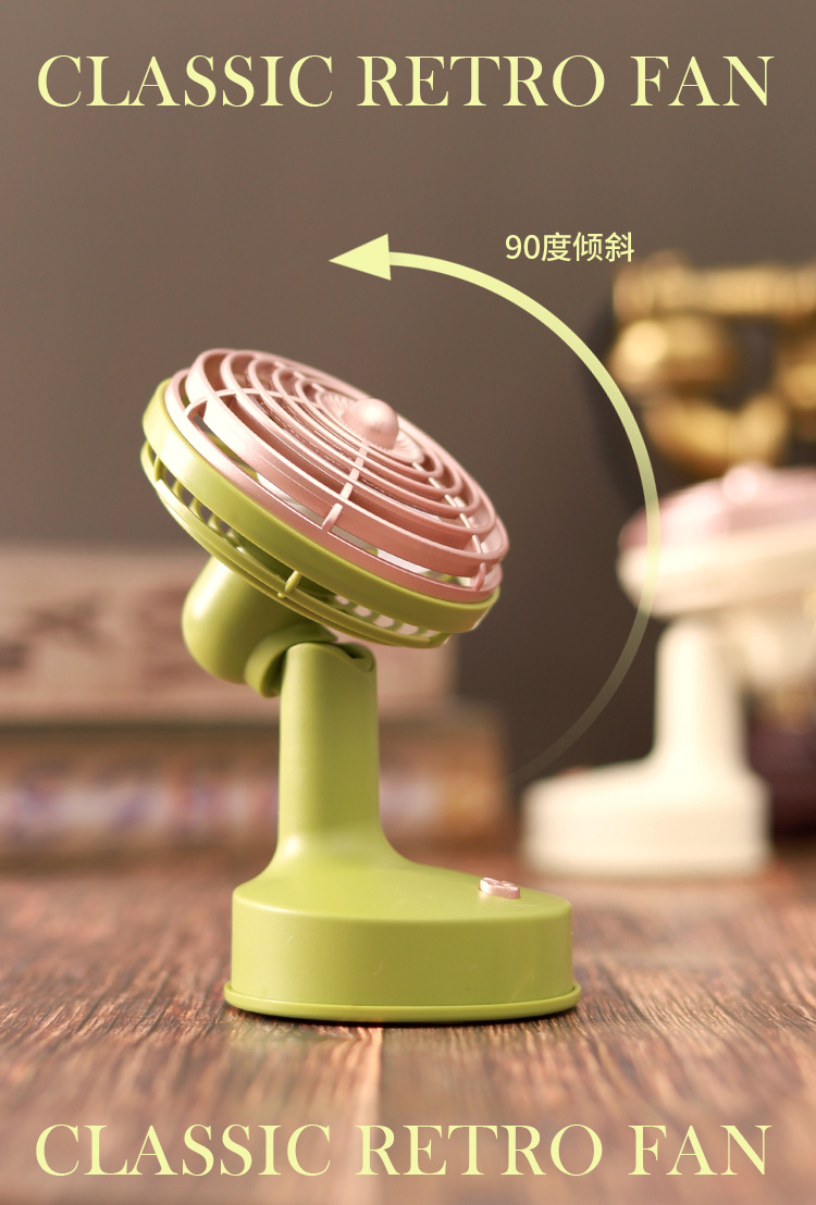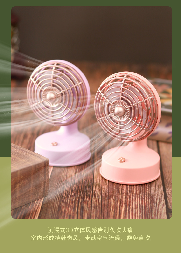 【经典复古❗桌面风扇】沉浸式3D立体一档风,更柔和告别久吹头痛,室内形成持续微风,带动空气流通,避免直吹,USB充电式圆头90度倾斜可调角度台式风扇QQ