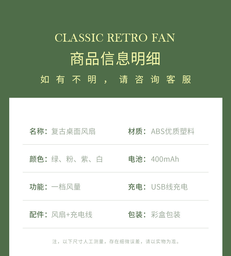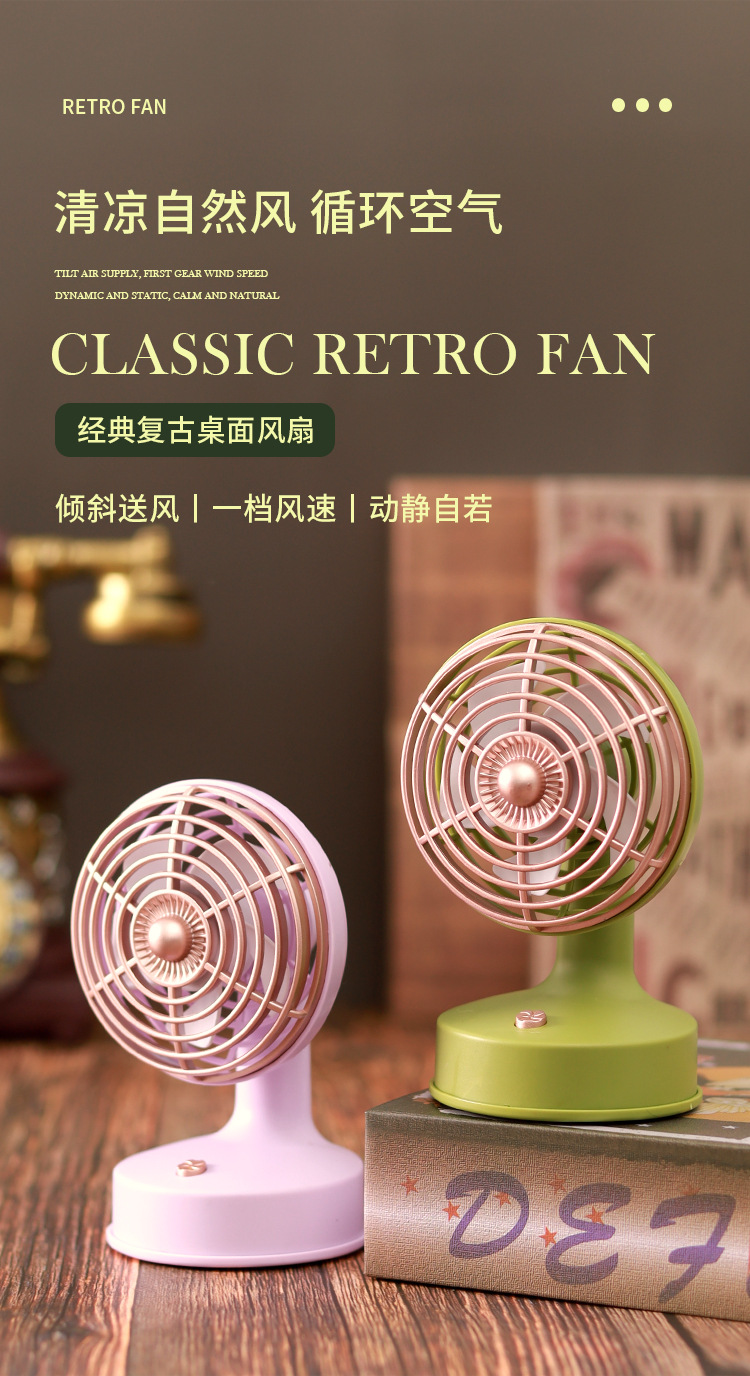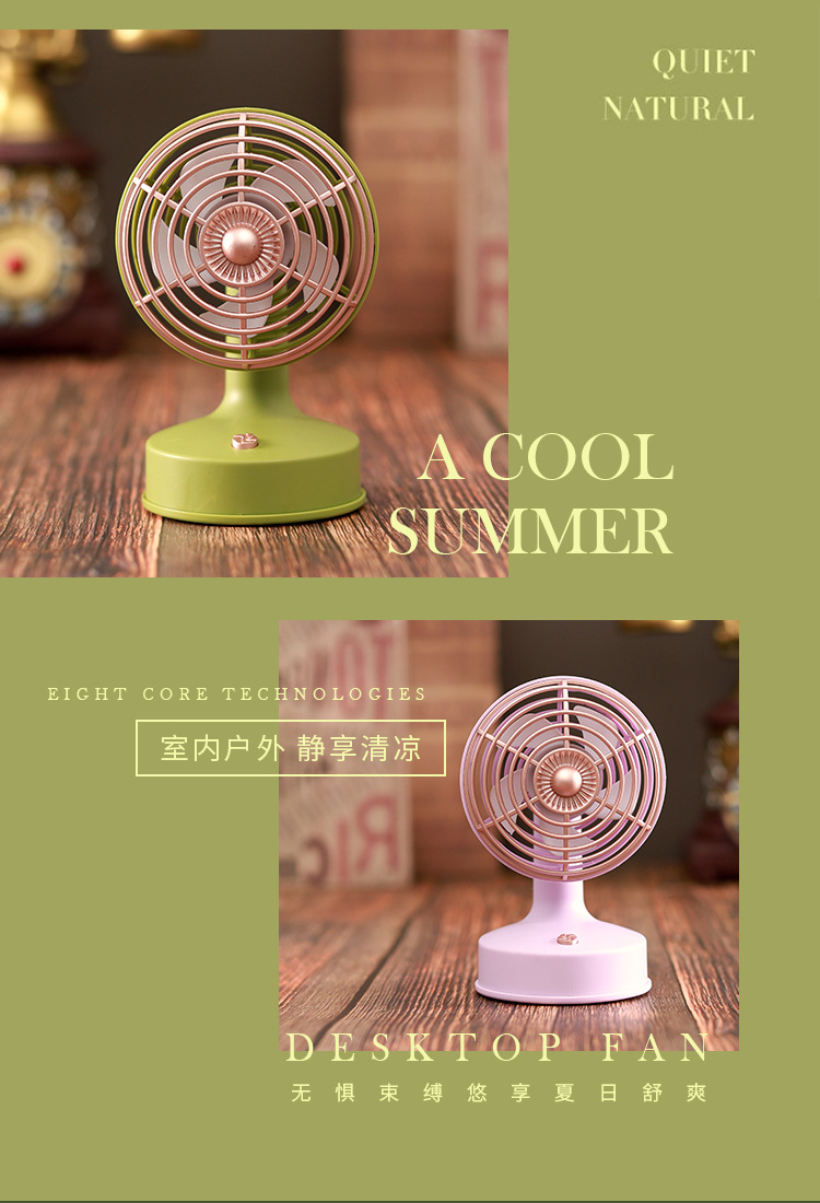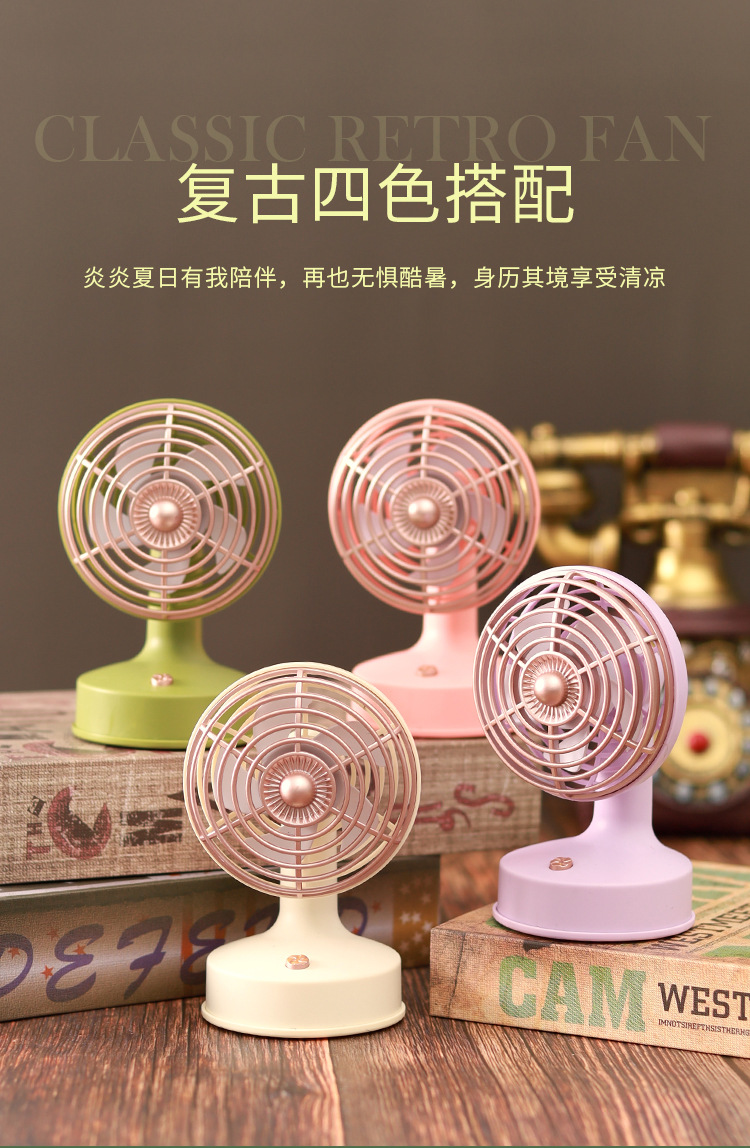 【经典复古❗桌面风扇】沉浸式3D立体一档风,更柔和告别久吹头痛,室内形成持续微风,带动空气流通,避免直吹,USB充电式圆头90度倾斜可调角度台式风扇QQ