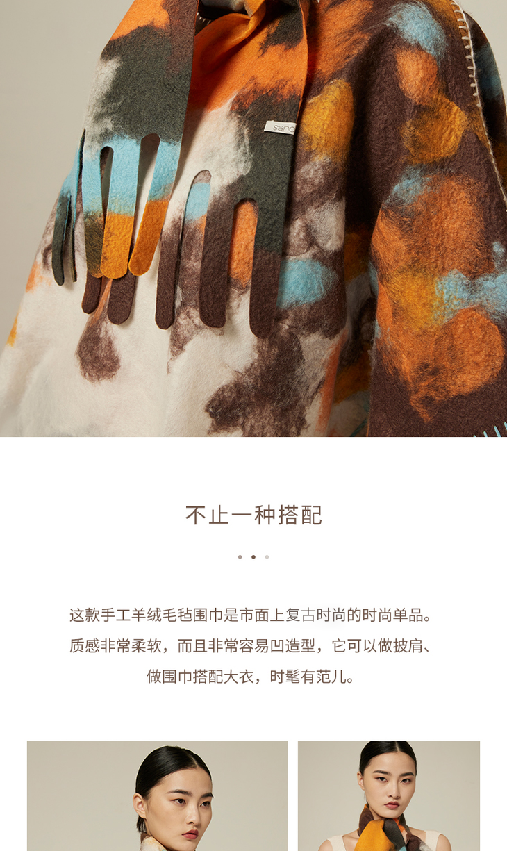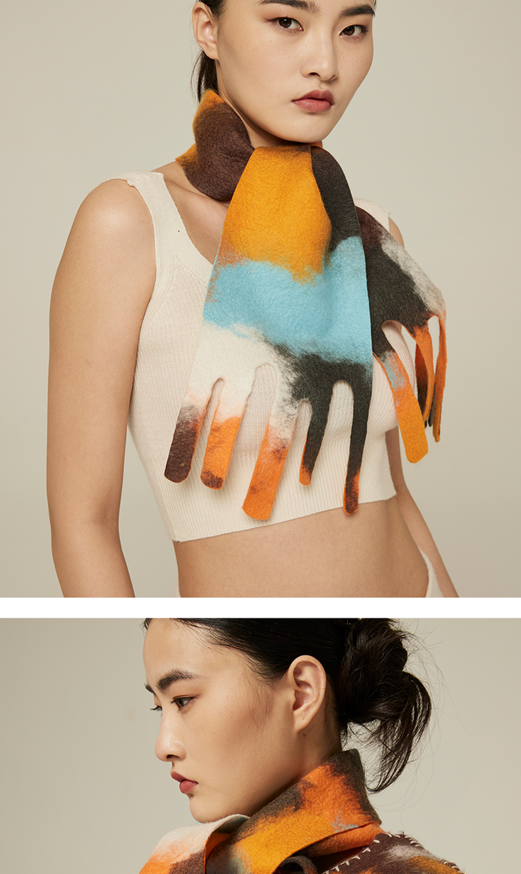 羊绒手工毛毡小围巾 SJF94P271W