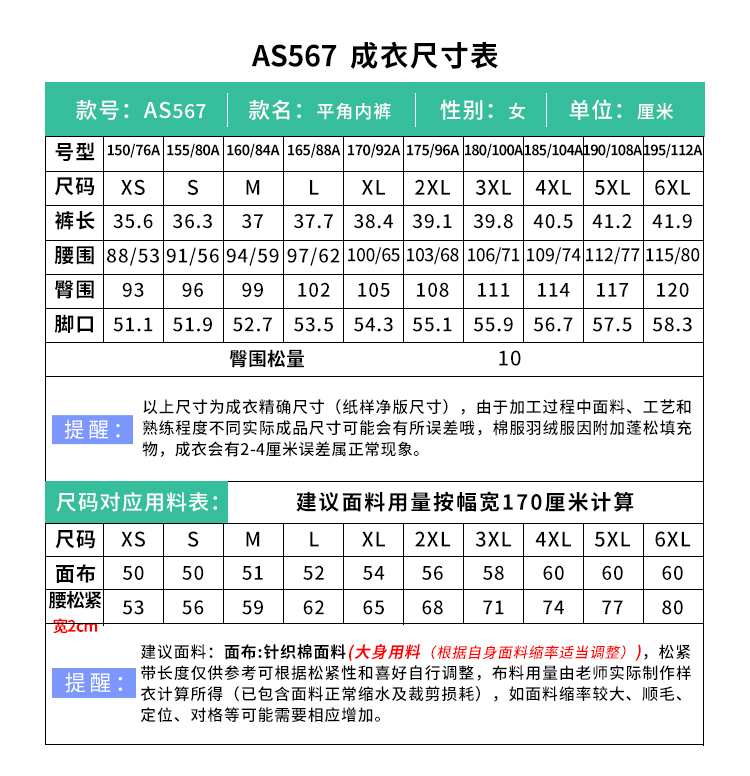 裁缝学苑AS567内裤中老年纯棉平角裤纸样女装大码妈妈安全裤短裤头样板