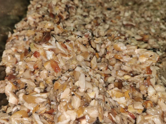 关键时刻到来,把握油锅温度,热锅下菜籽油,待菌子炸至7成熟放入芝麻和调味品,翻炒均匀,水分干时即可出锅放凉,准备装瓶。 炸松露酱时满屋飘香,空气中都是诱人的香味,让你馋得忍不住咽口水,等到起锅了,迫不及待地盛上米饭,夹些松露酱,拌一拌就是无上的美味了。