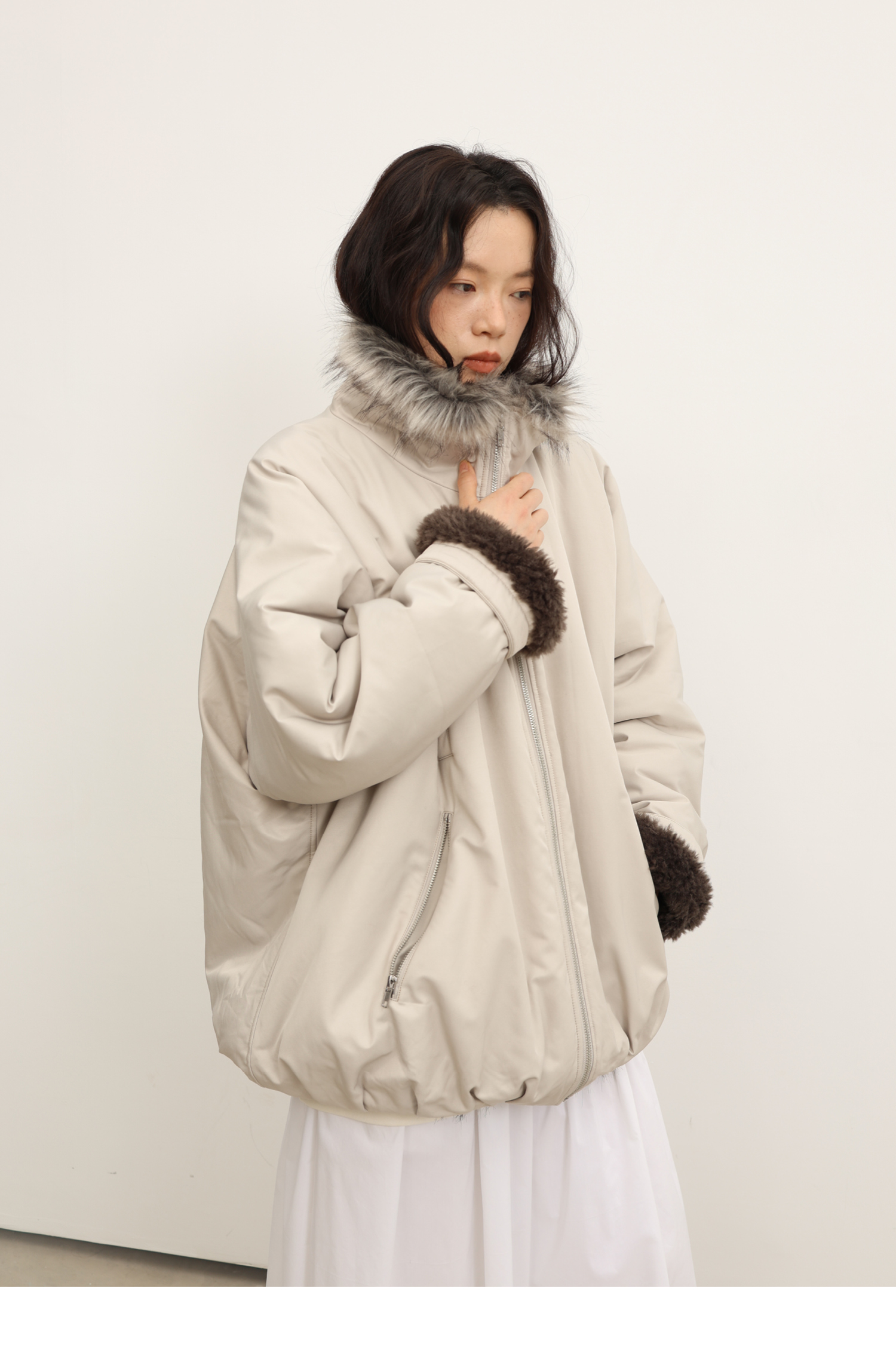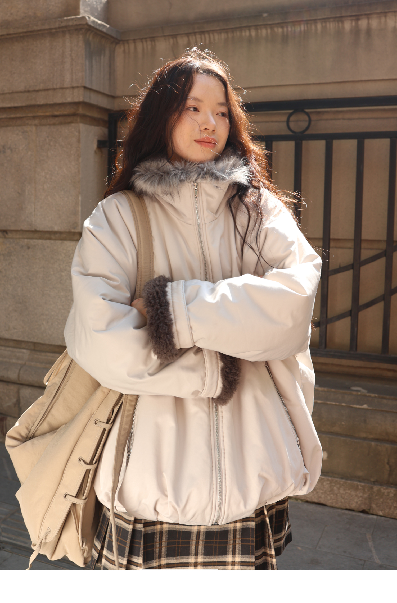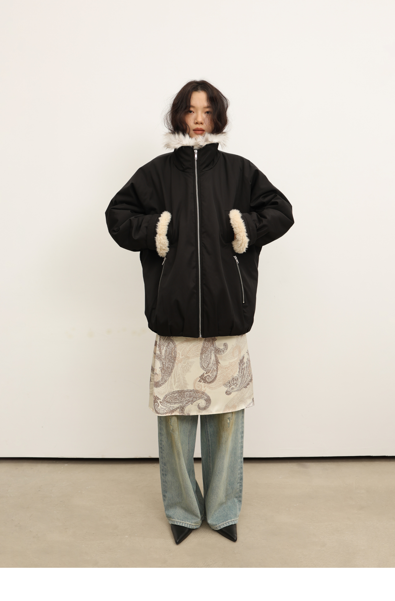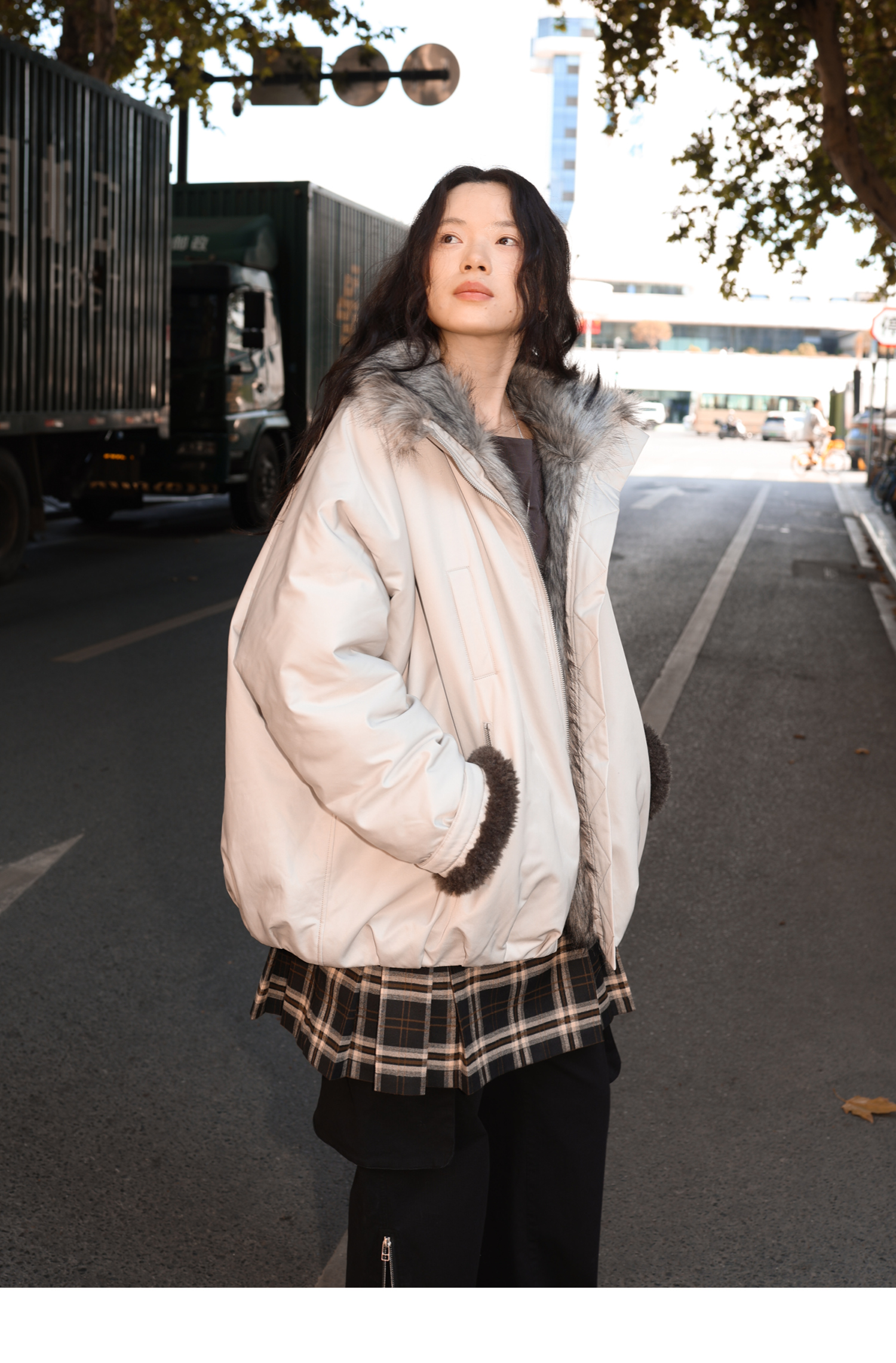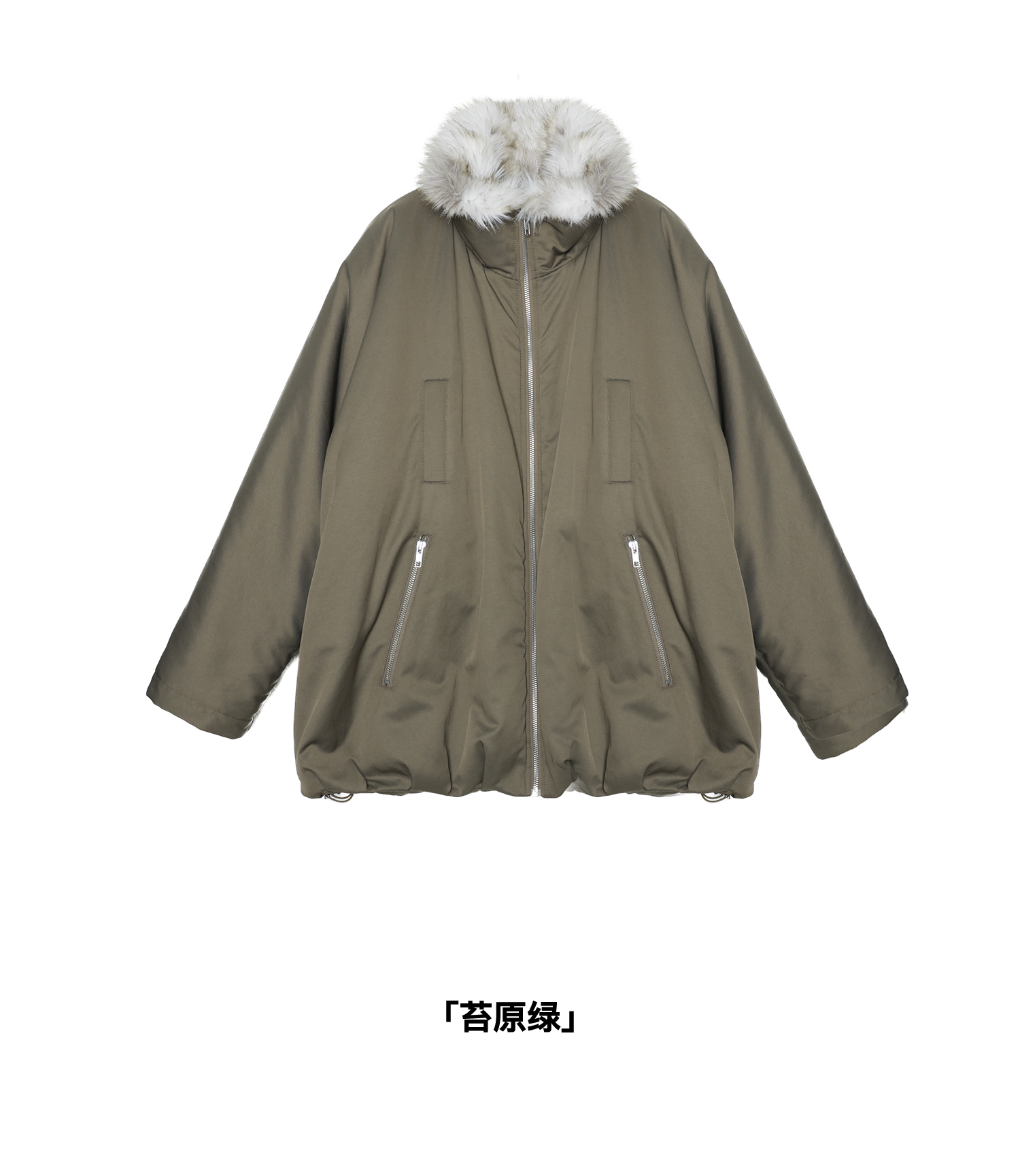 素舶 皮草内胆夹棉高领立体花苞型保暖棉服派克服斯拉夫外套