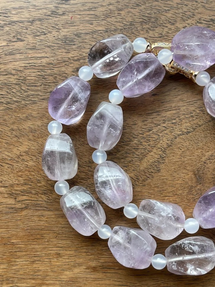 天然淡紫晶随型珠项链