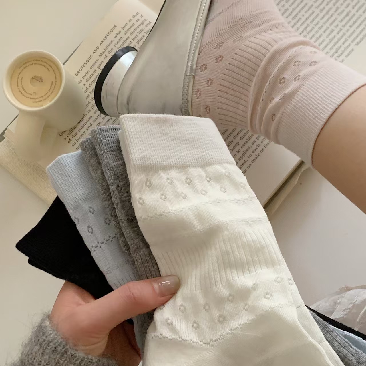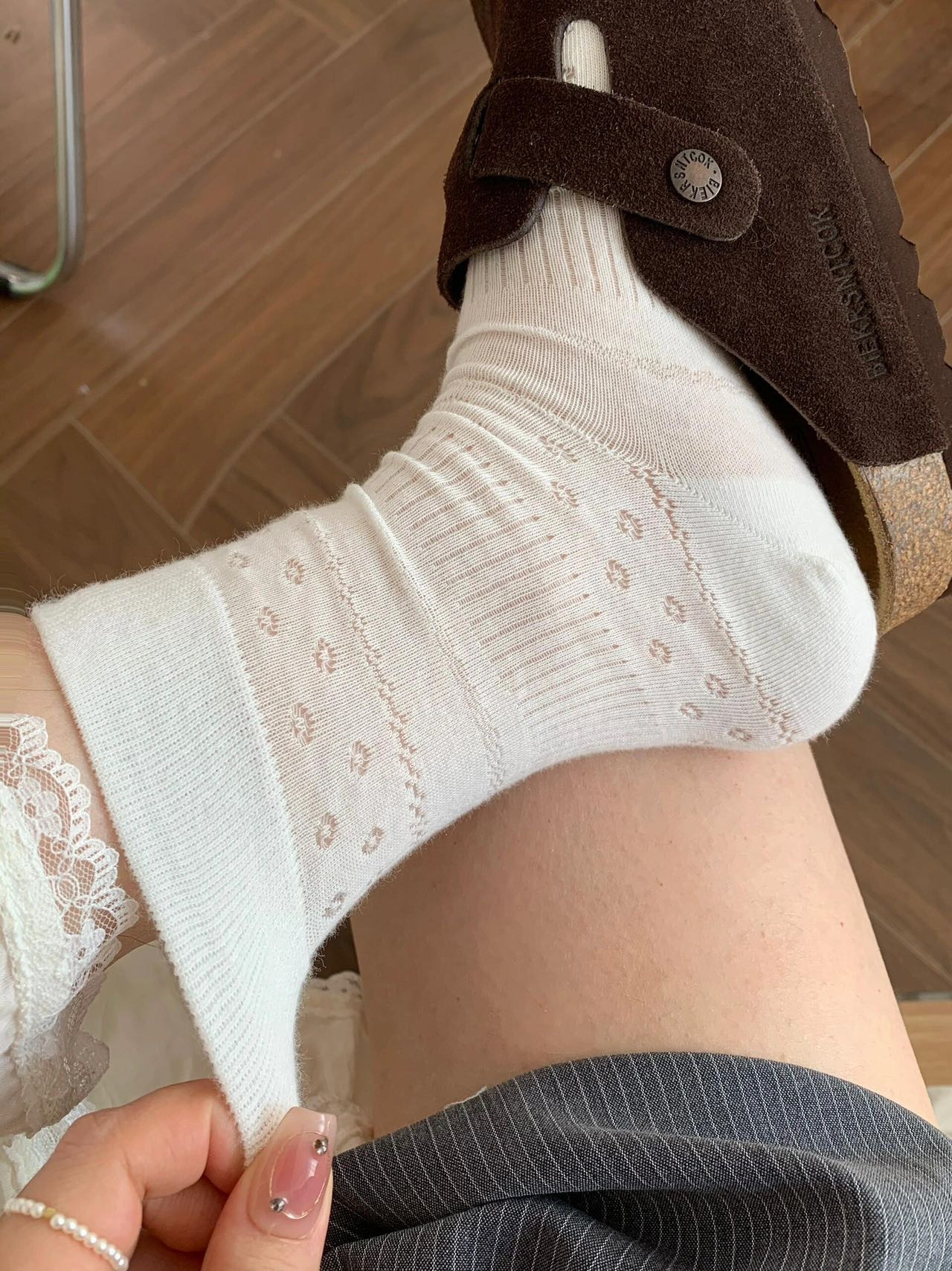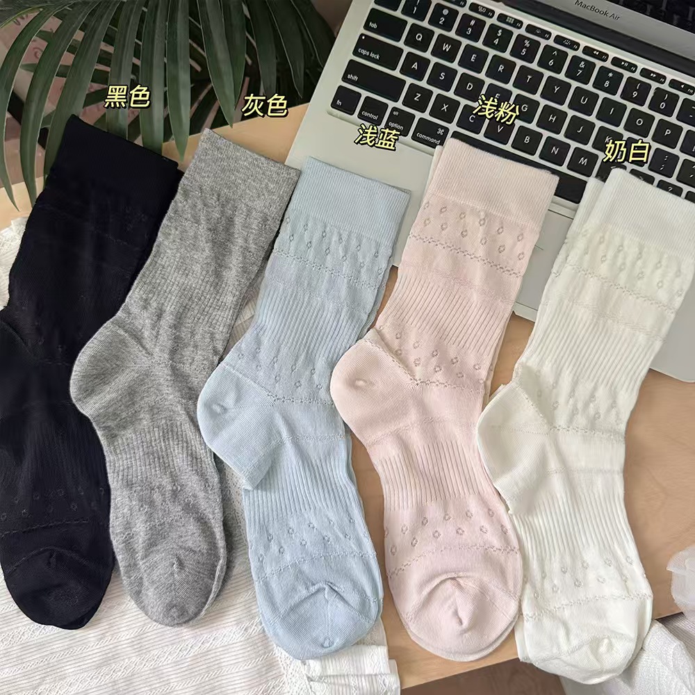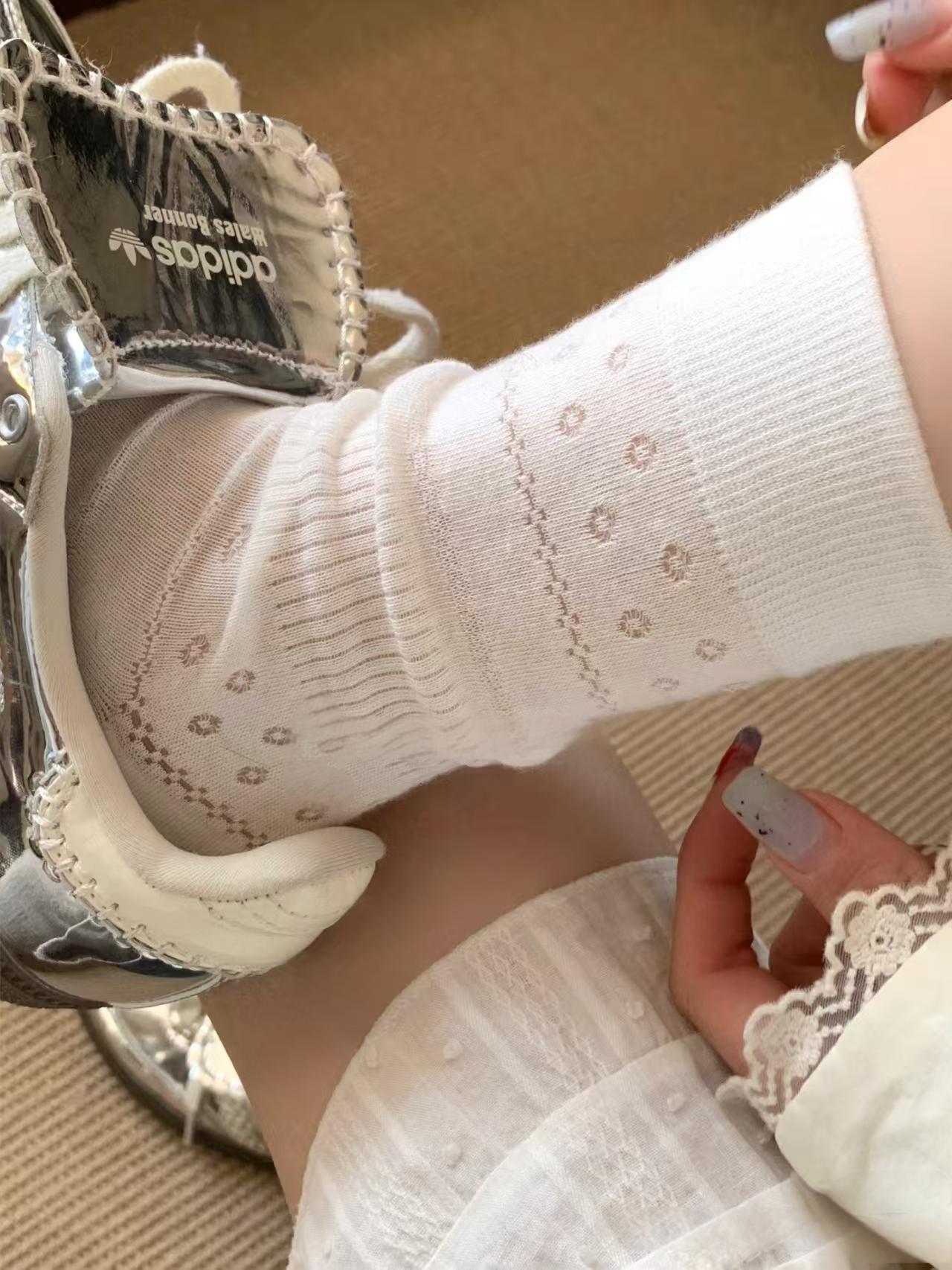 5双装又薄又软的镂空堆堆袜夏季薄款纯棉无骨中筒袜