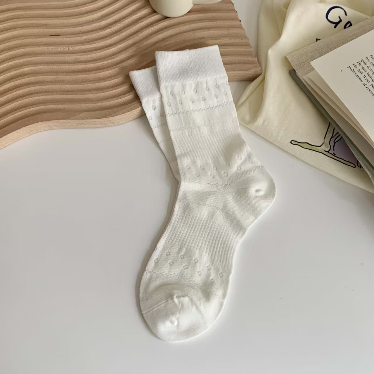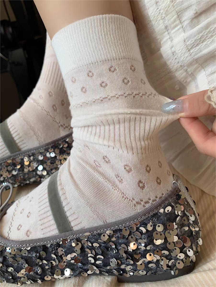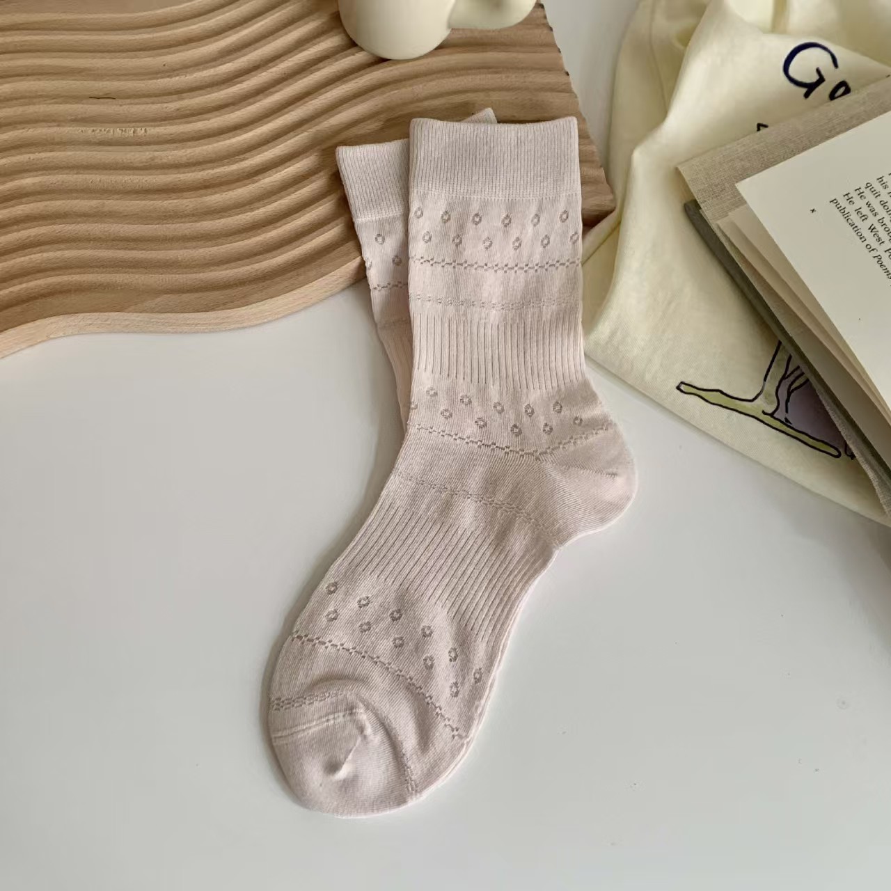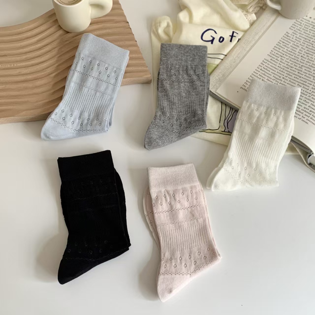 5双装又薄又软的镂空堆堆袜夏季薄款纯棉无骨中筒袜