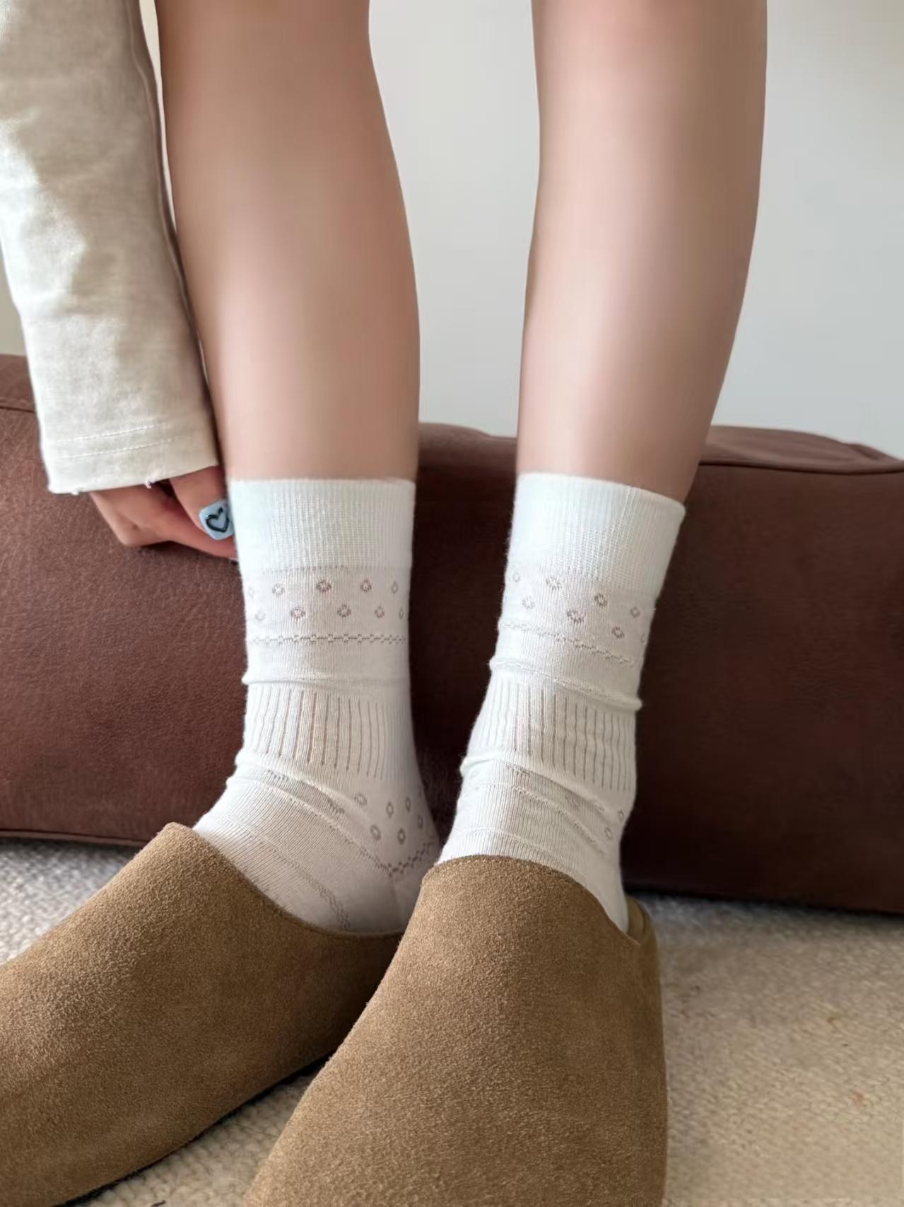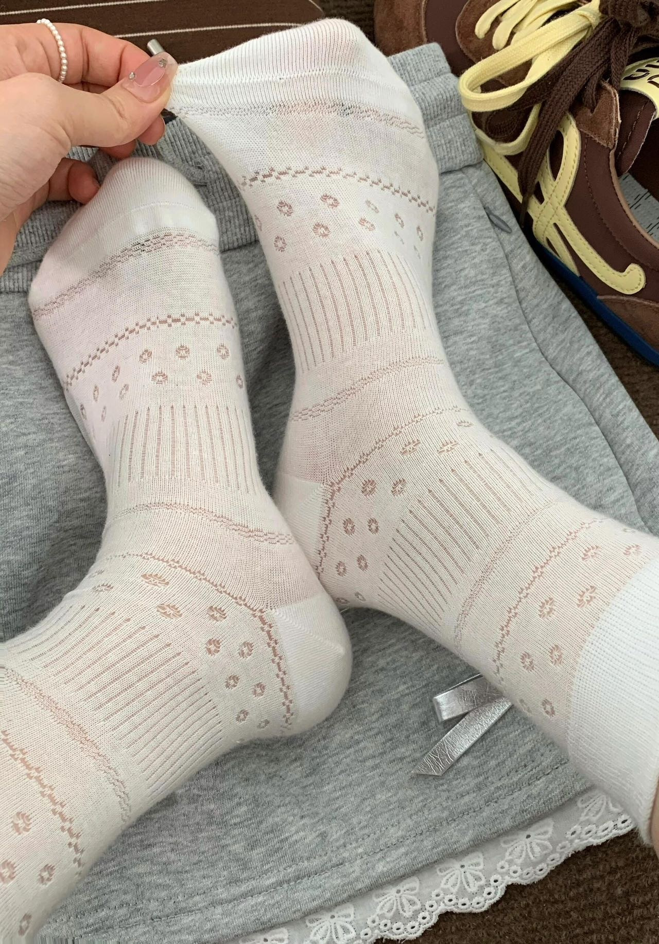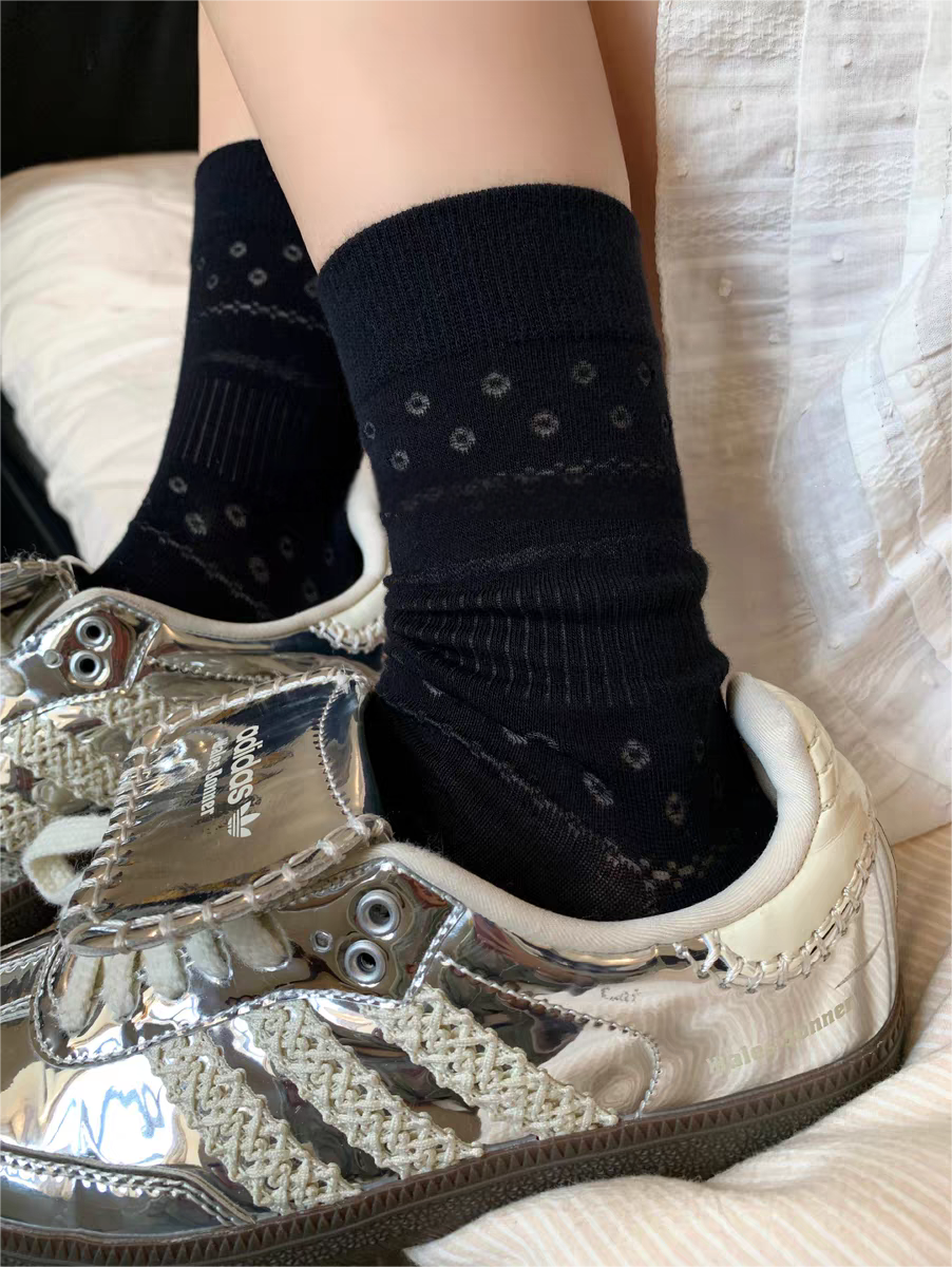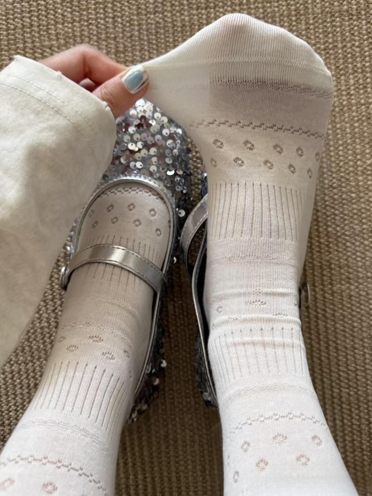 5双装又薄又软的镂空堆堆袜夏季薄款纯棉无骨中筒袜