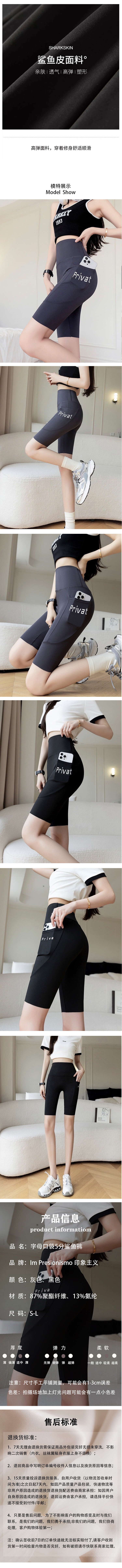 撞色3分鲨鱼裤/字母口袋5分鲨鱼裤