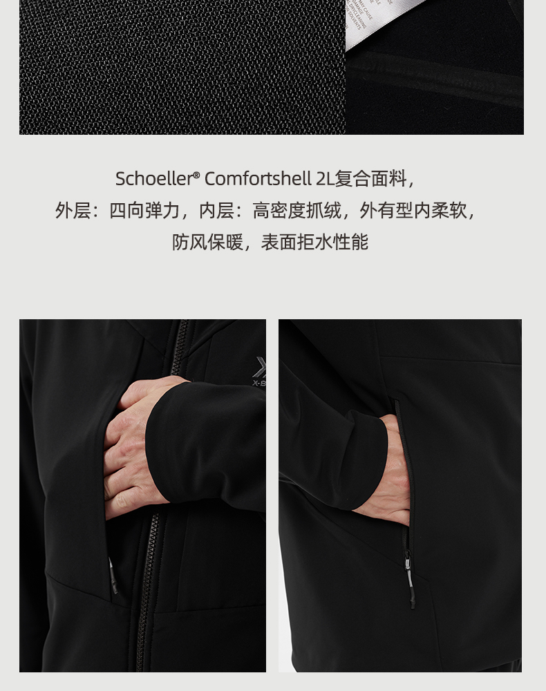 X-BIONIC 旷野加绒保暖软壳衣 男子户外防风防泼水连帽外套 22870