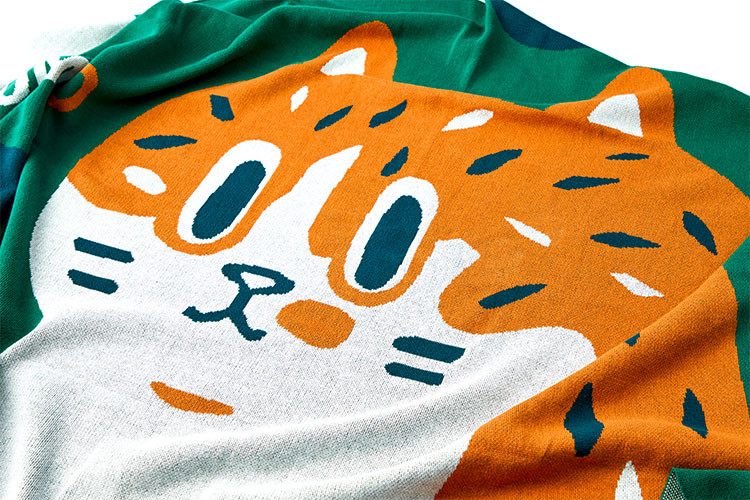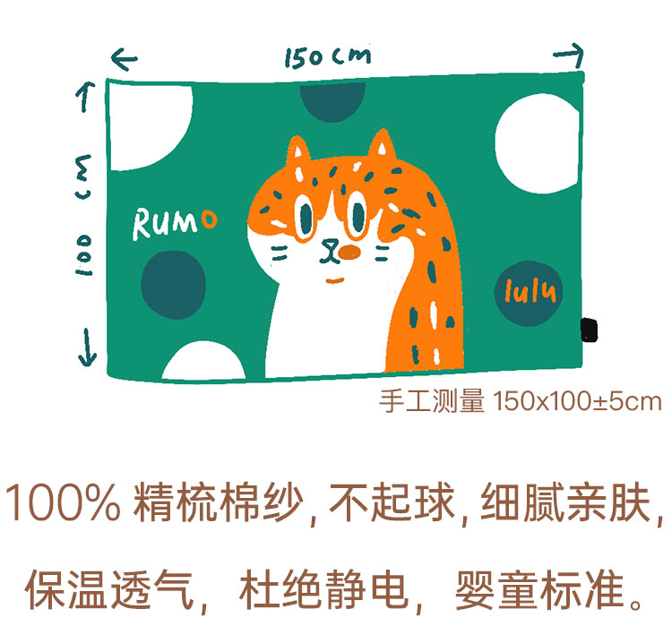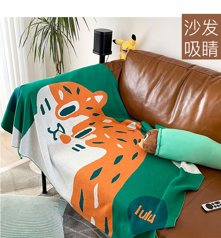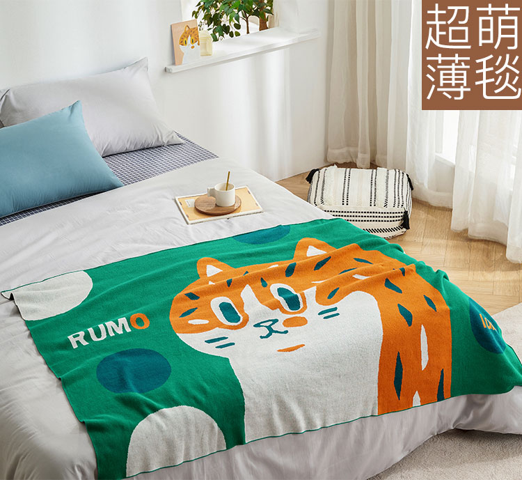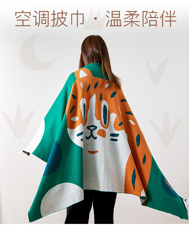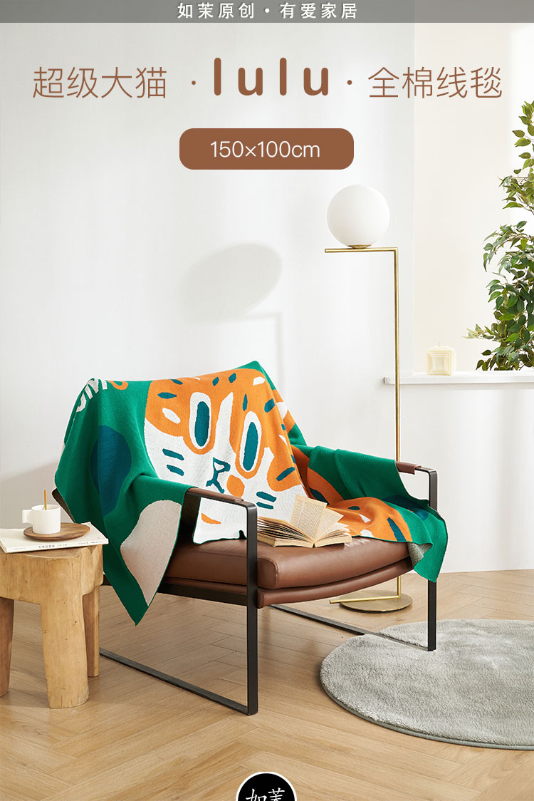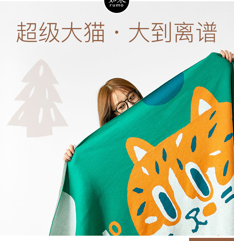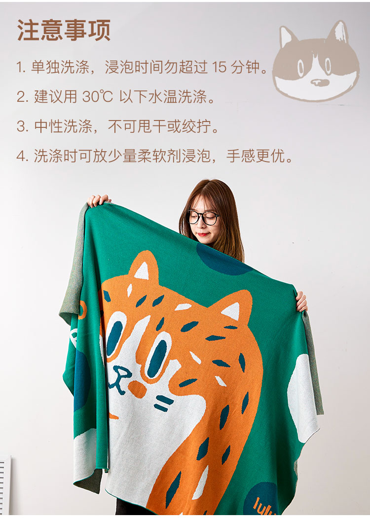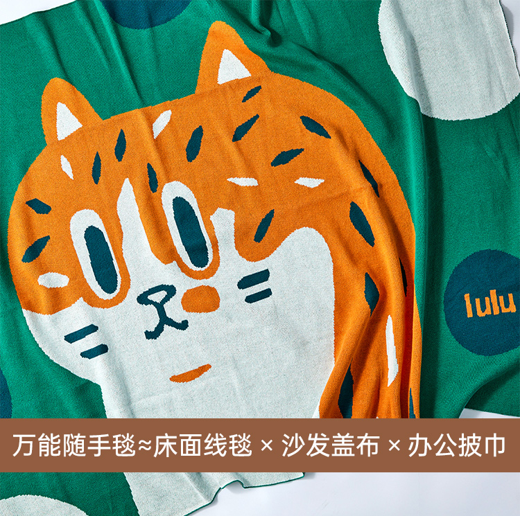 【幸运土猫】超级大猫lulu如茉家居休闲盖毯绿色披巾全棉针织提花原创设计
