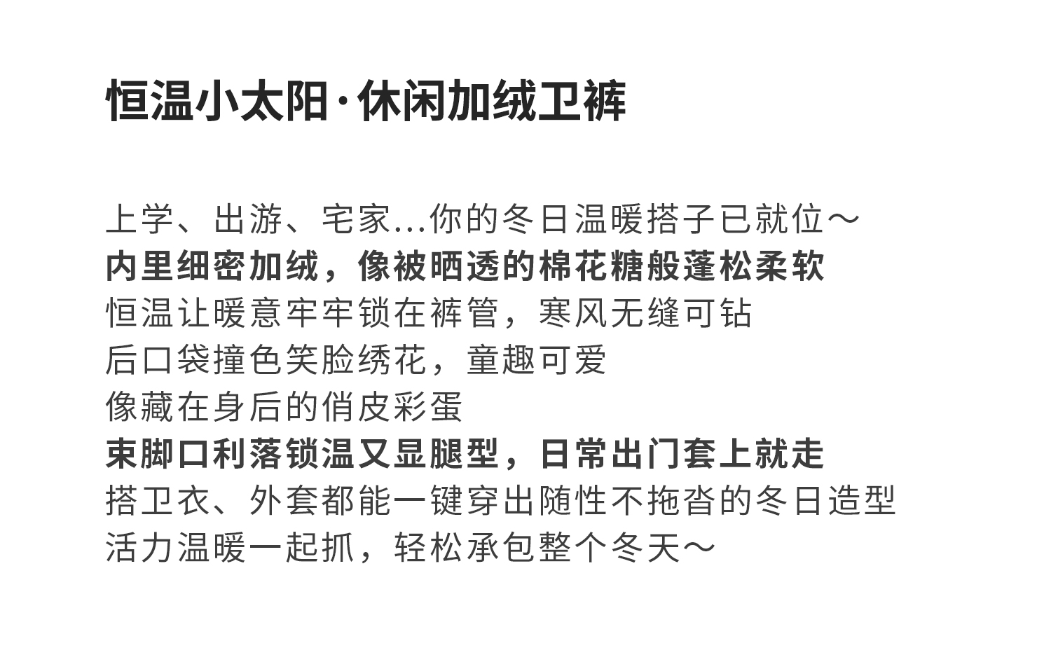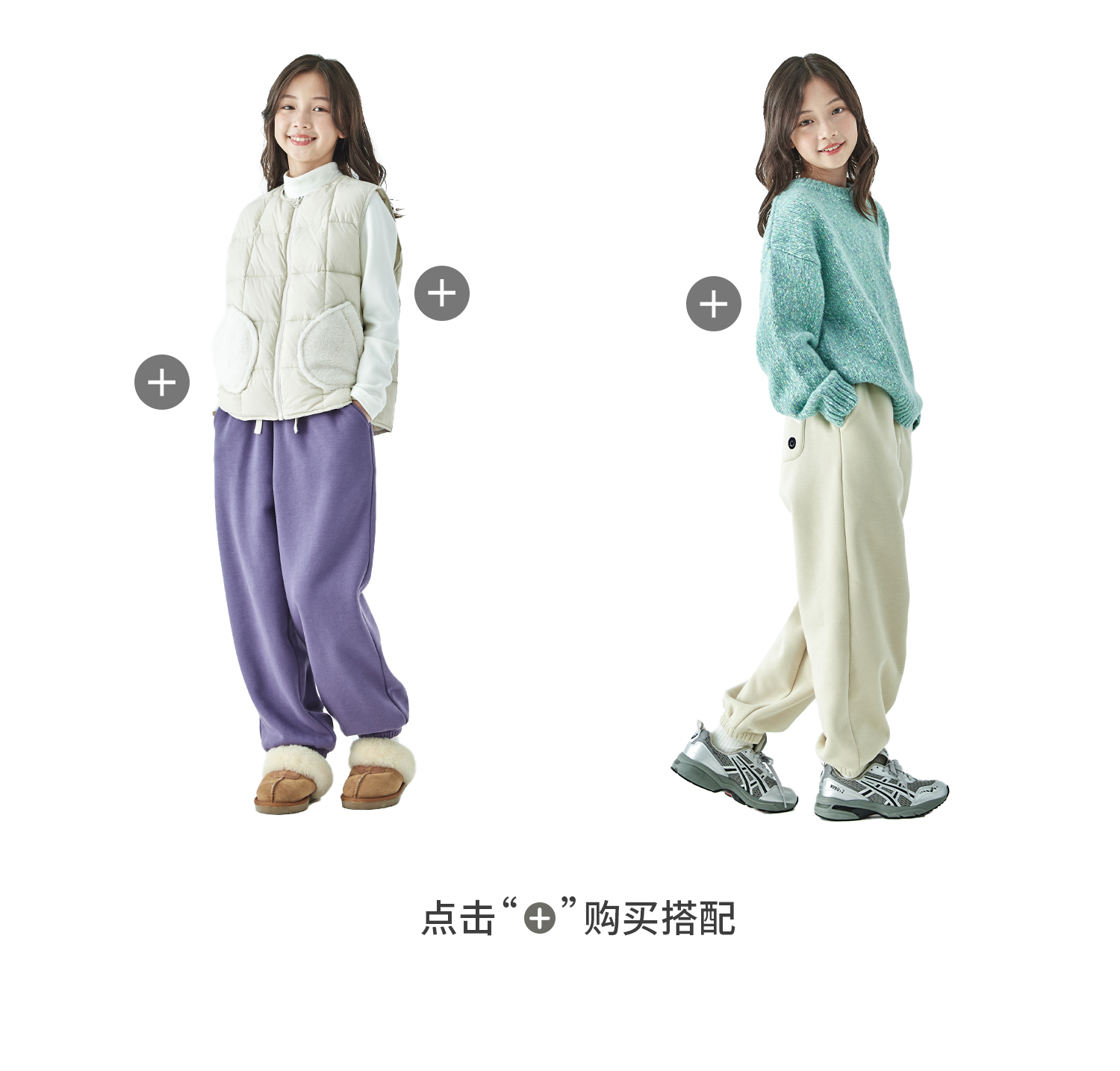 预售12.31发 棵初25年秋冬新款亲子中大女童抗菌休闲加绒卫裤抗静电恒温束脚裤
