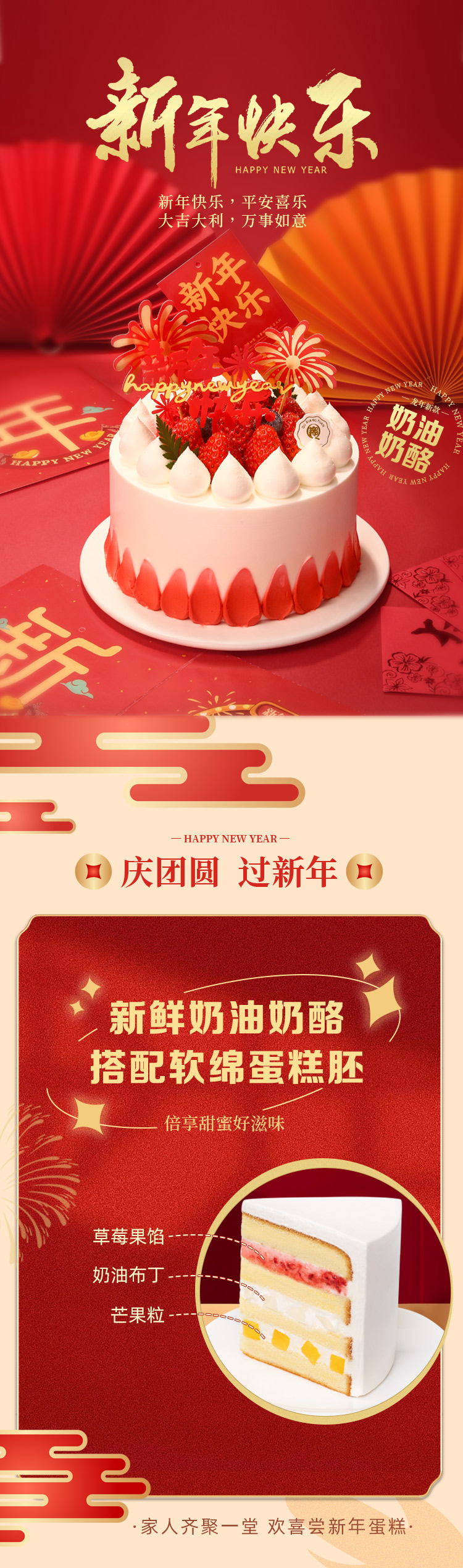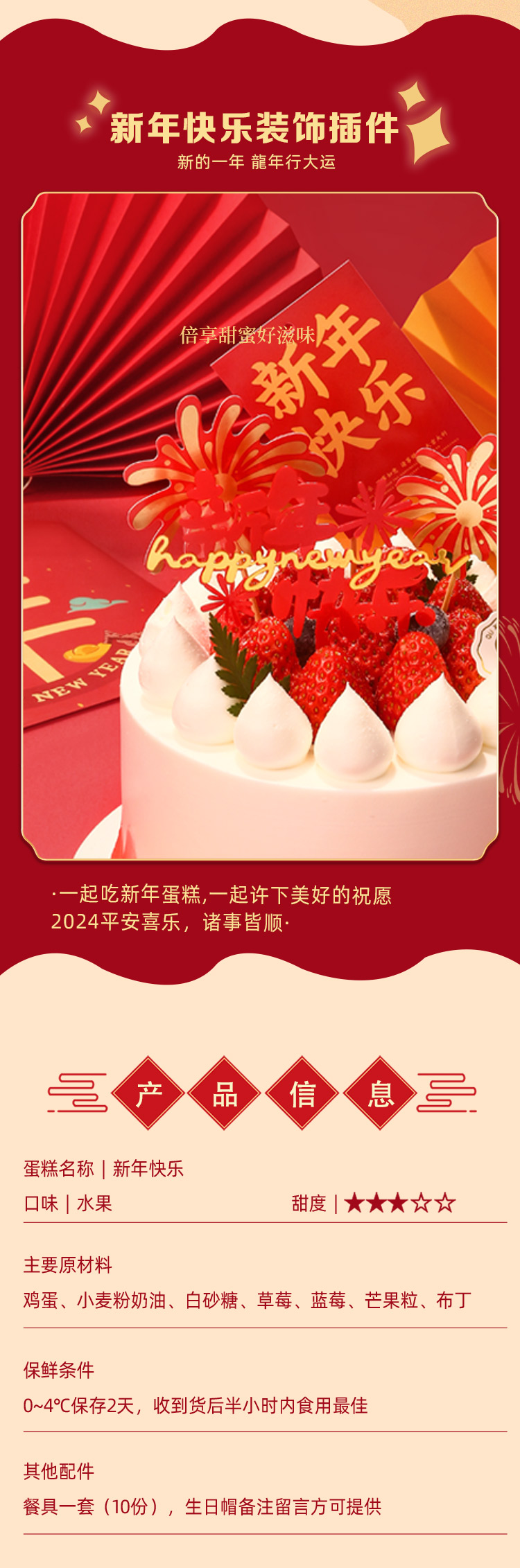 新年快乐乳酪动物奶油6寸高款个头蛋糕