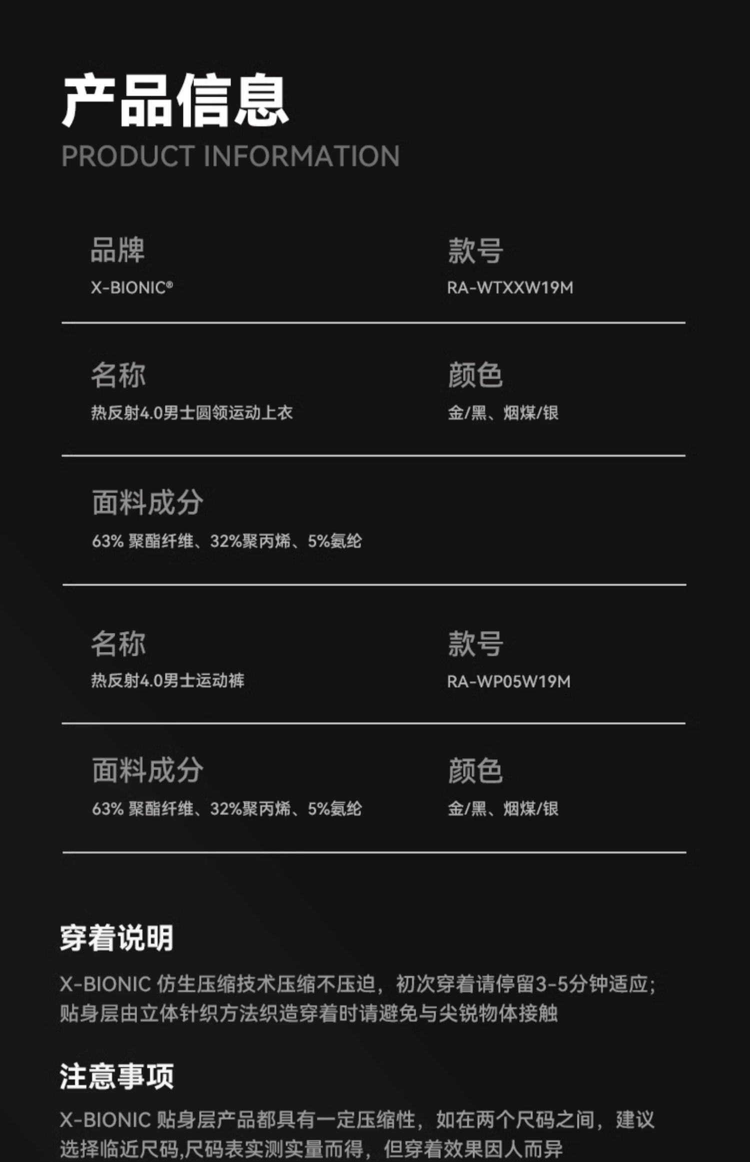 X-BIONIC 热反射4.0 高抗寒男子运动衣裤 滑雪骑行登山保暖内衣