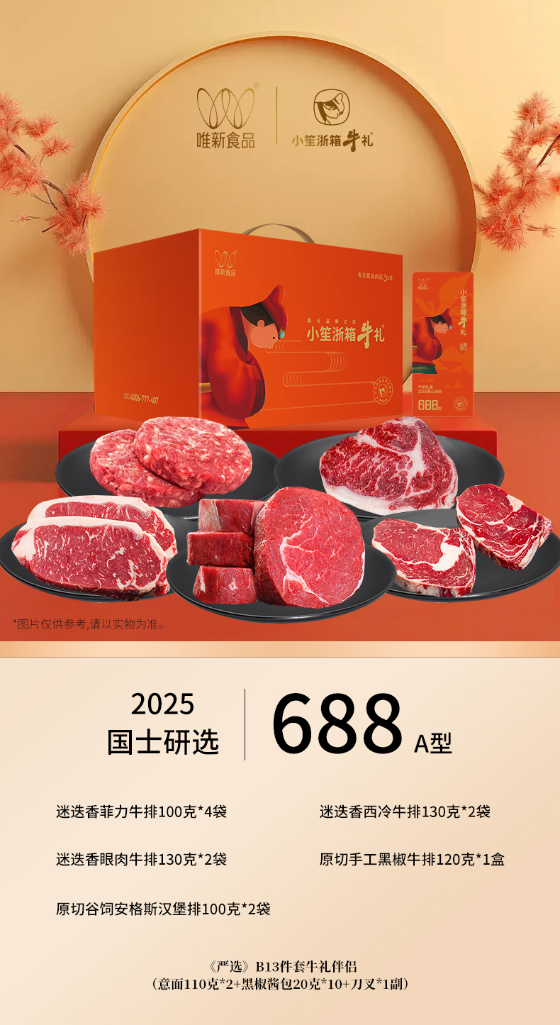 唯新 小笙浙箱牛礼《国士研选》688A型牛排套餐礼盒