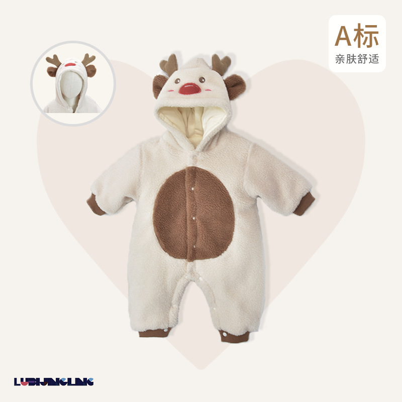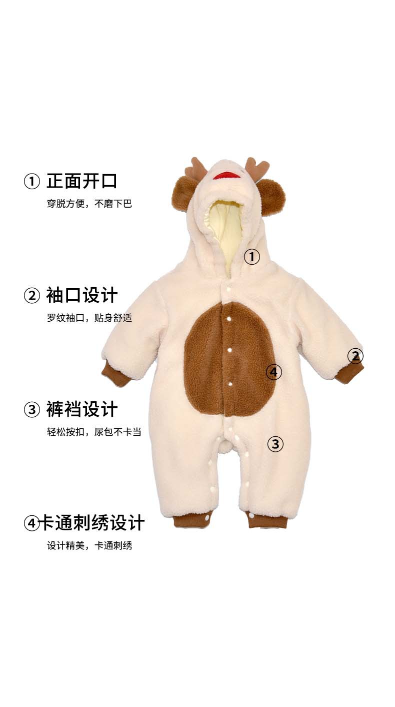 【买衣送鞋】婴儿棉衣冬装羊羔绒麋鹿爬爬服洋气2022新款加棉宝宝连体外出服