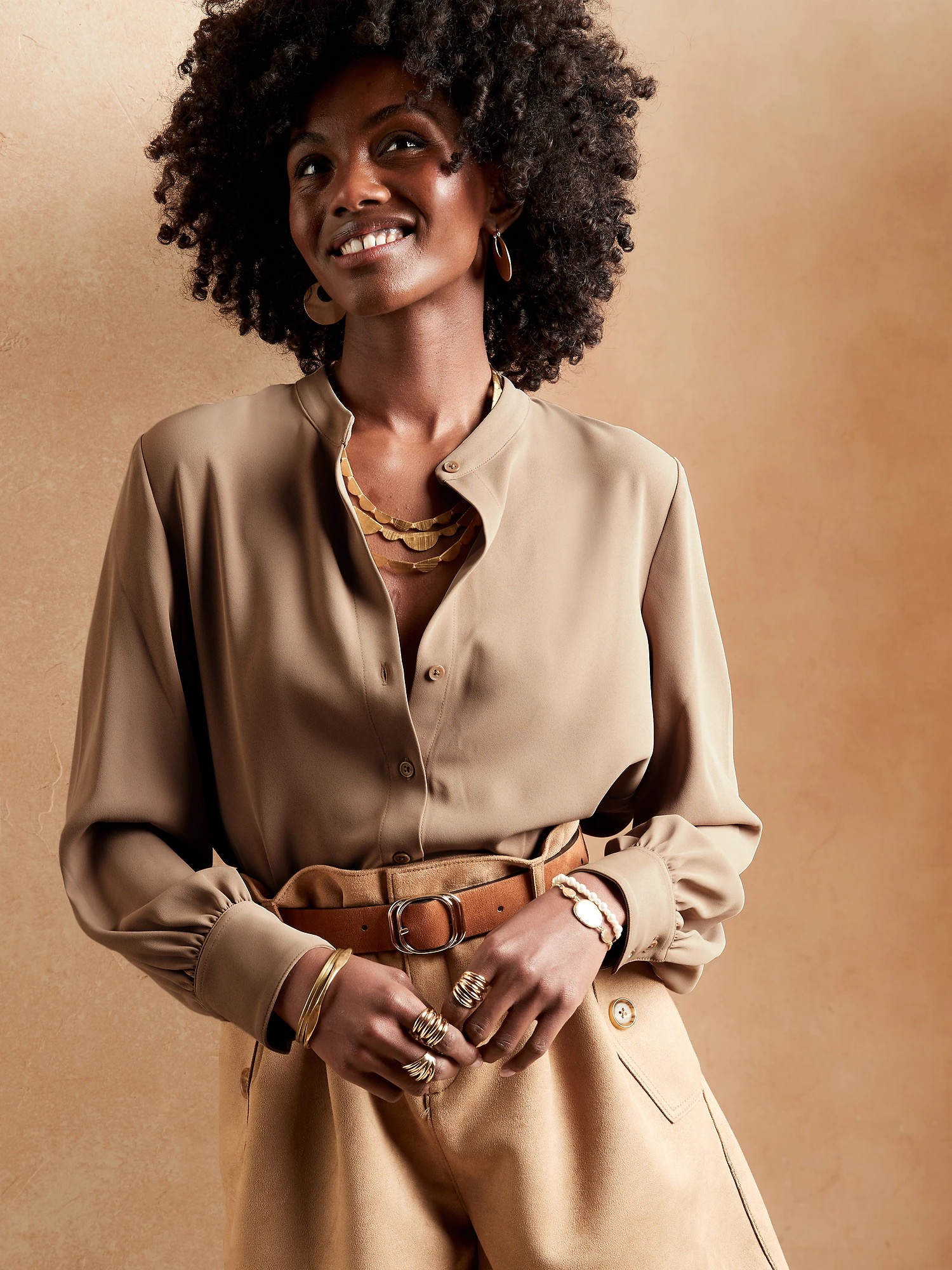 新款好折¥420!Banana Republic BR 设计款系带衬衫