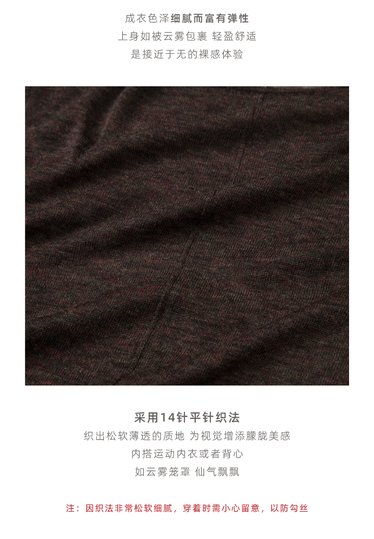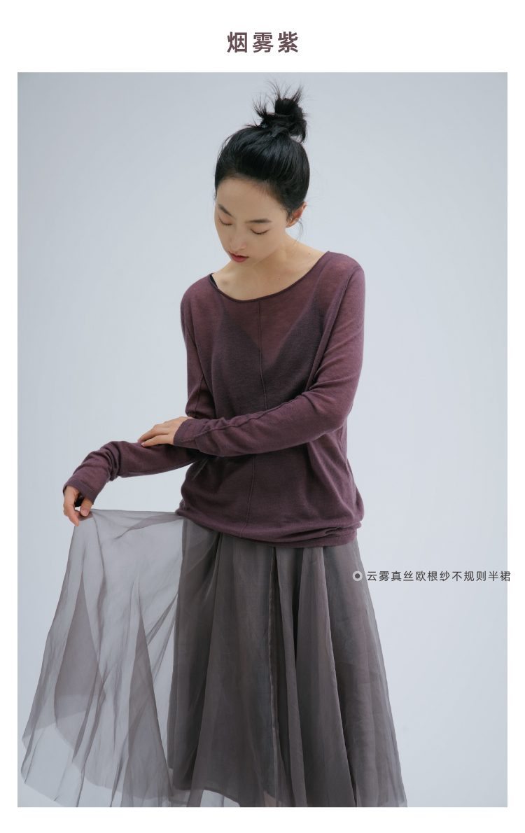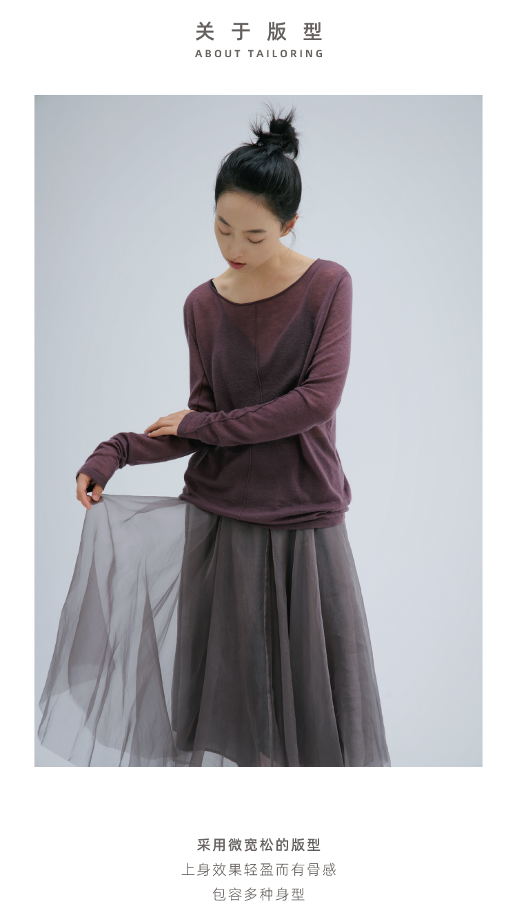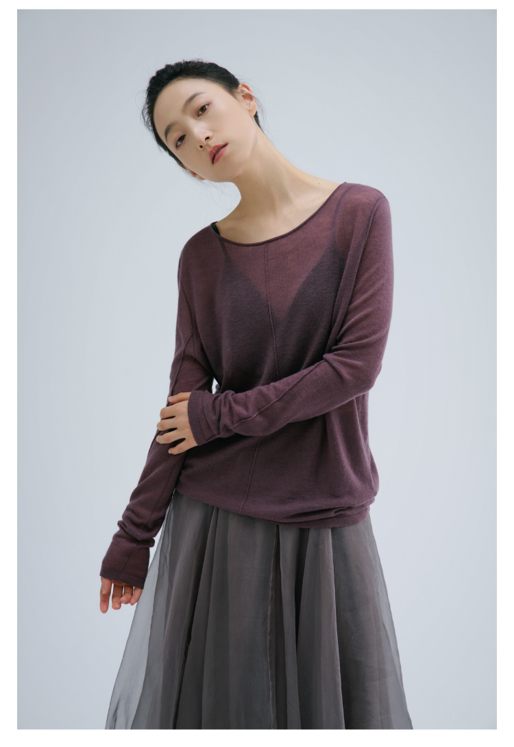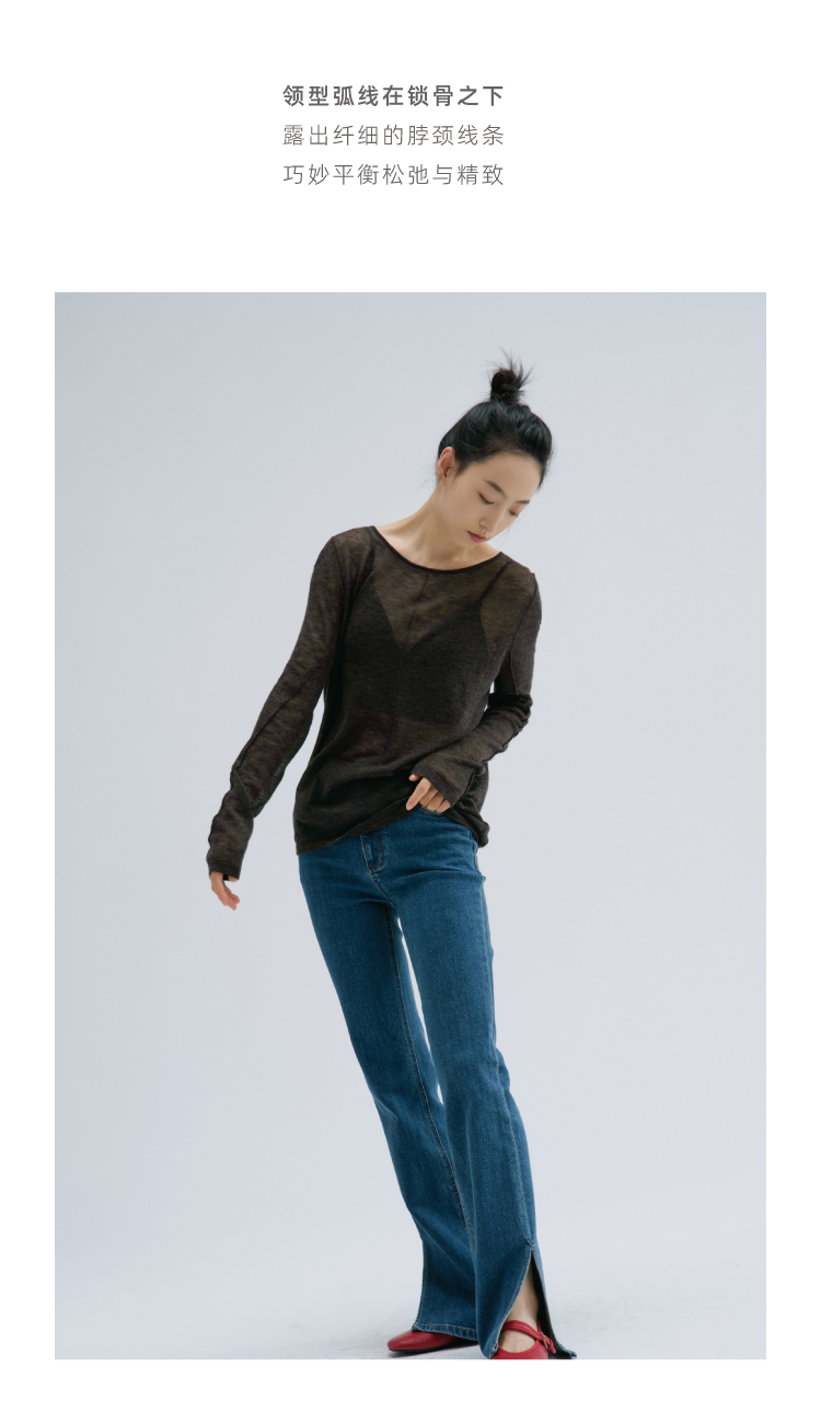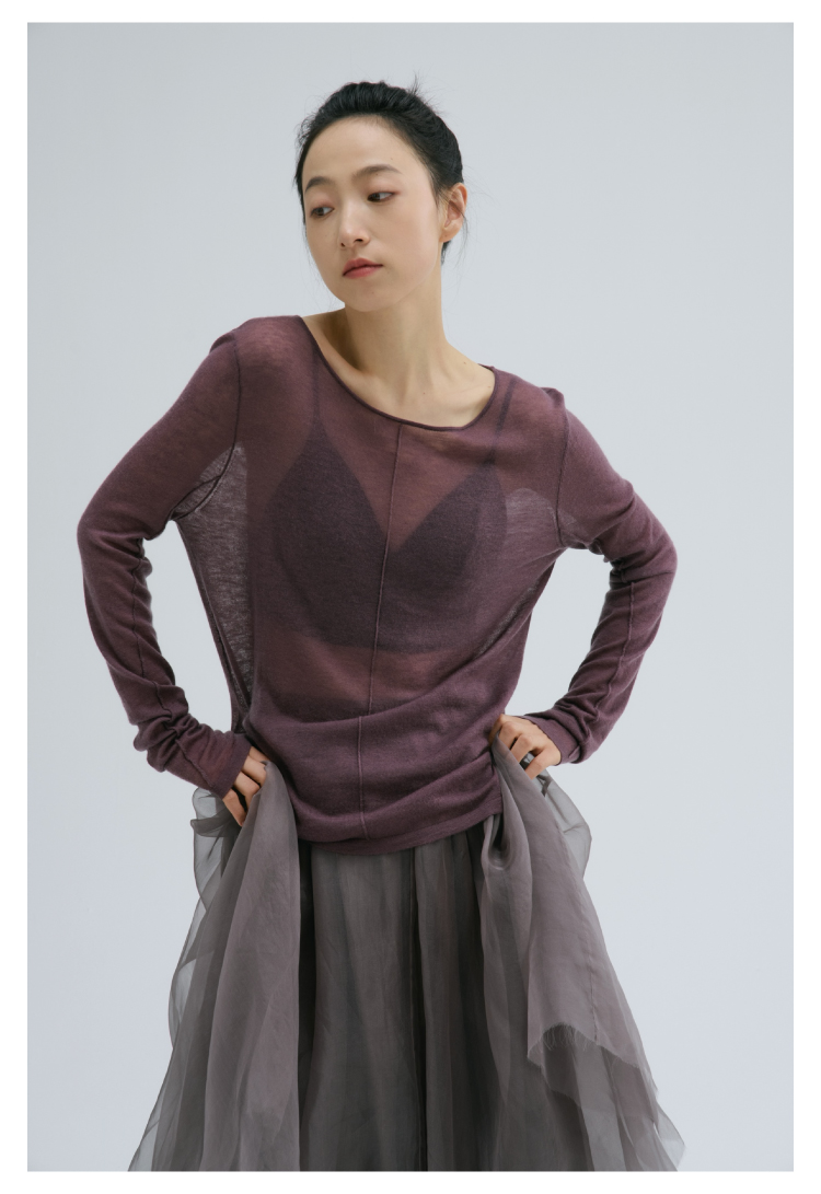 裸感·羊绒醋酸木耳边修身长袖罗纹衫