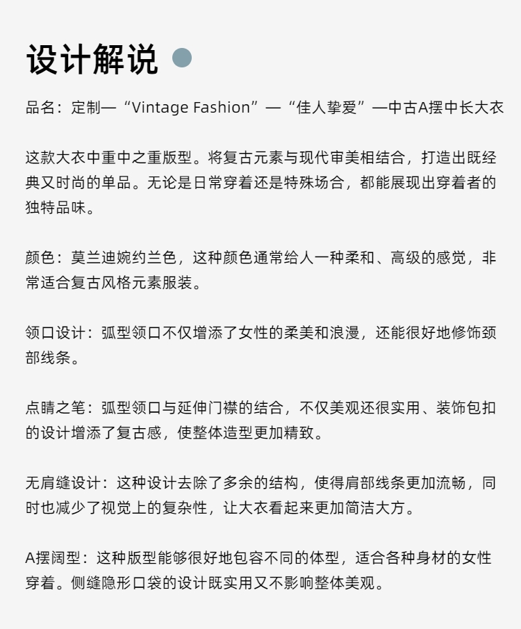 C系列—定制—“Vintage Fashion”—佳人挚爱—中古A摆中长大衣2406002