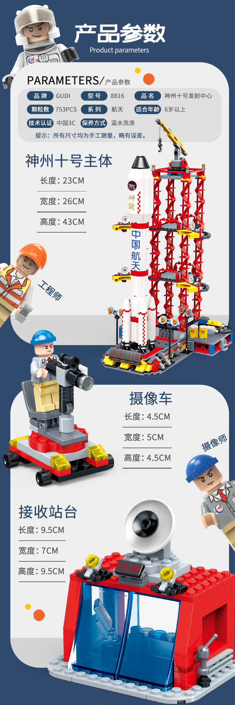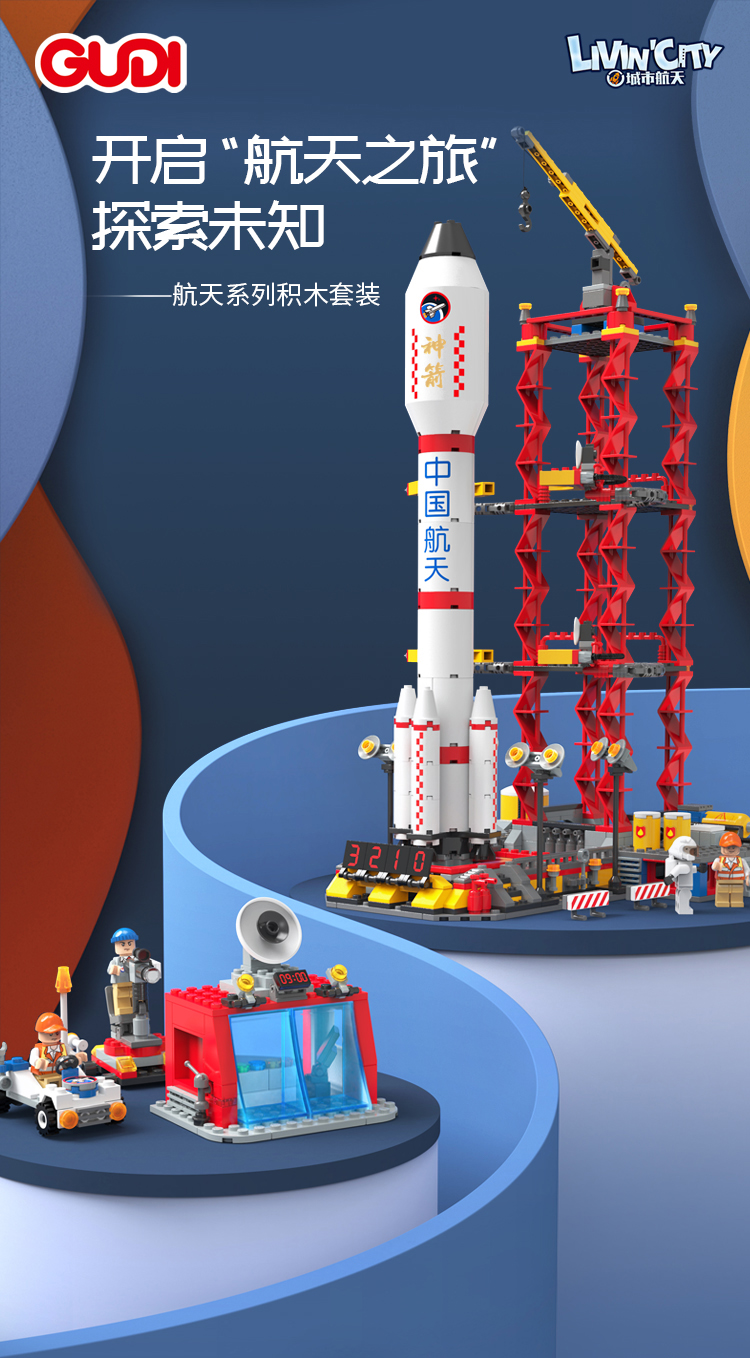 【真实还原航天原型,细节丰富】古迪航天系列积木益智拼插玩具航天飞机发射中心/神-舟-十号/探路登陆车/亚特兰蒂斯发射中心/大力神火箭装载车