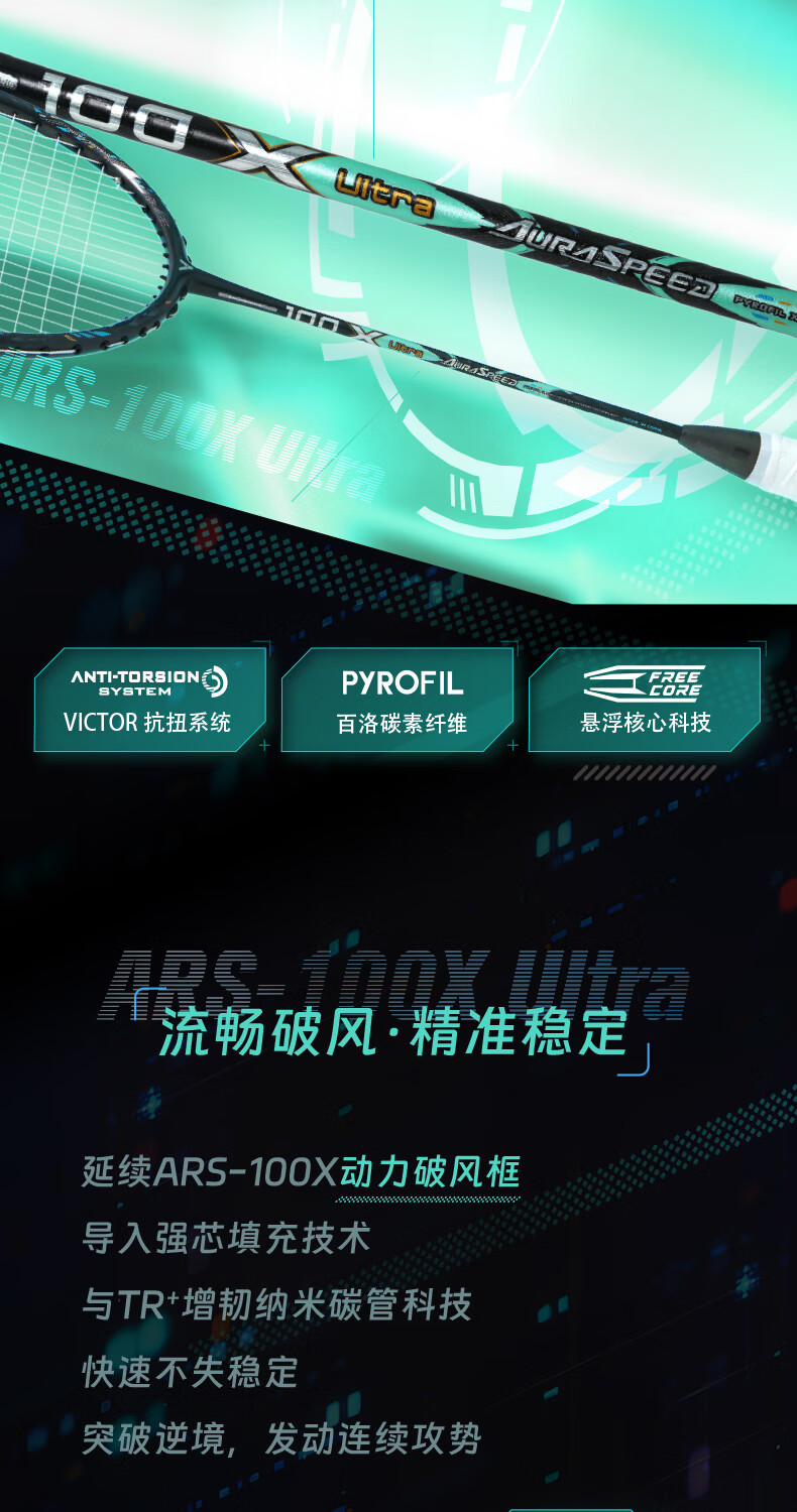 【空拍不穿线】2025新款VICTOR威克多羽毛球拍单拍合金碳纤维100X升级款球拍 ARS-100X Ultra