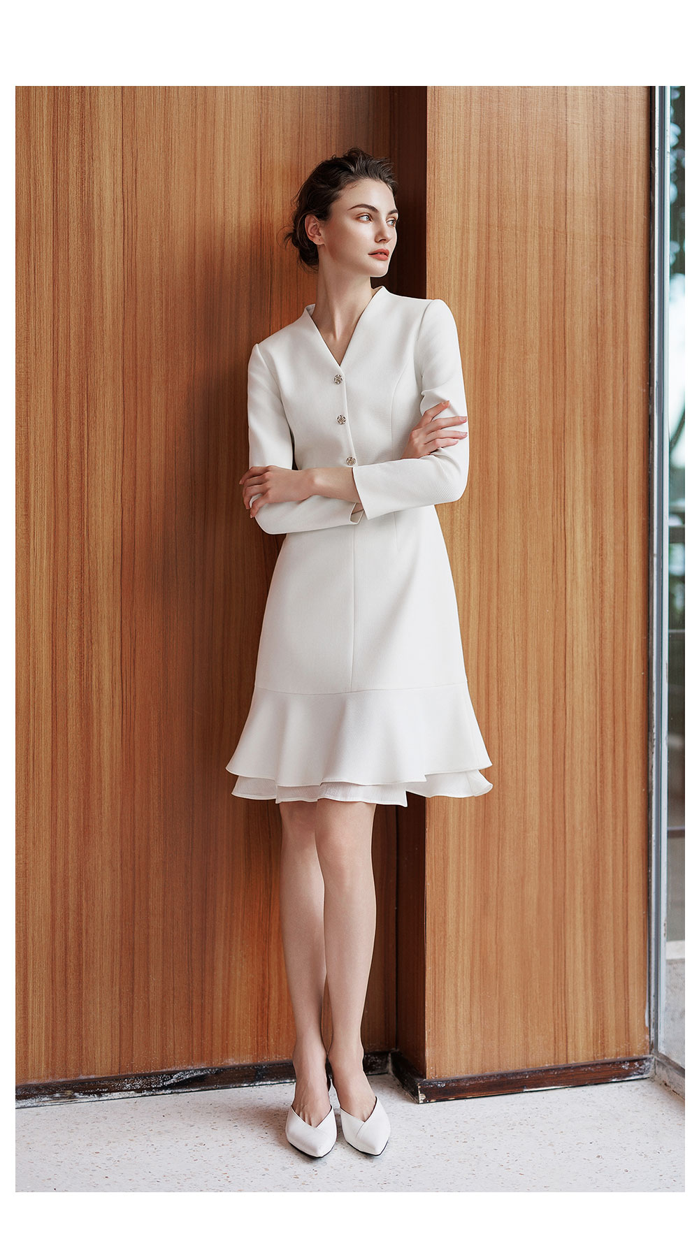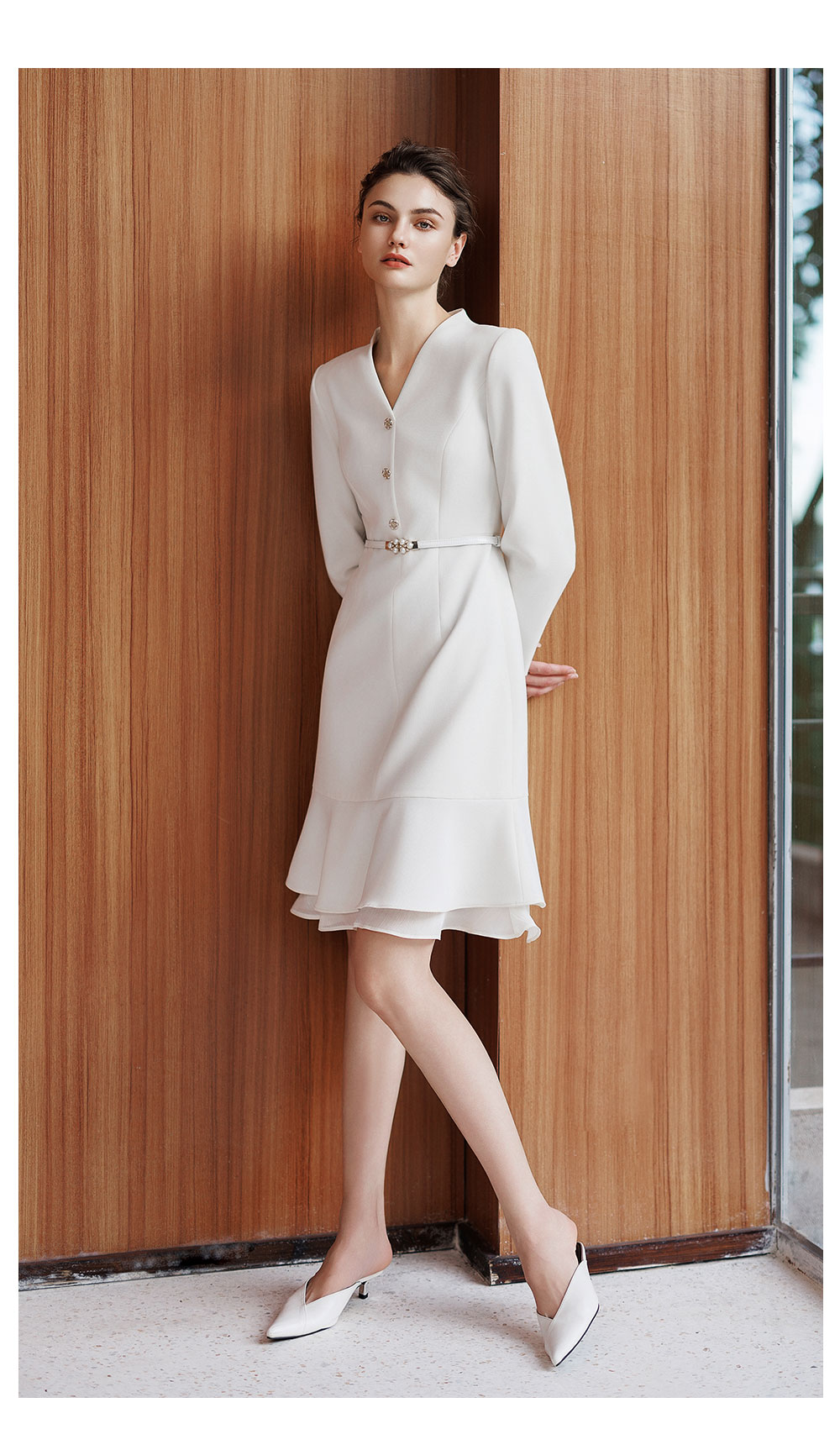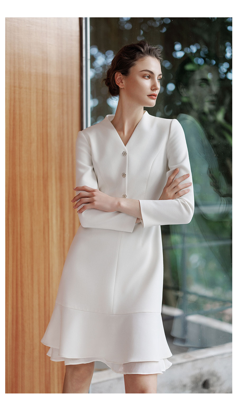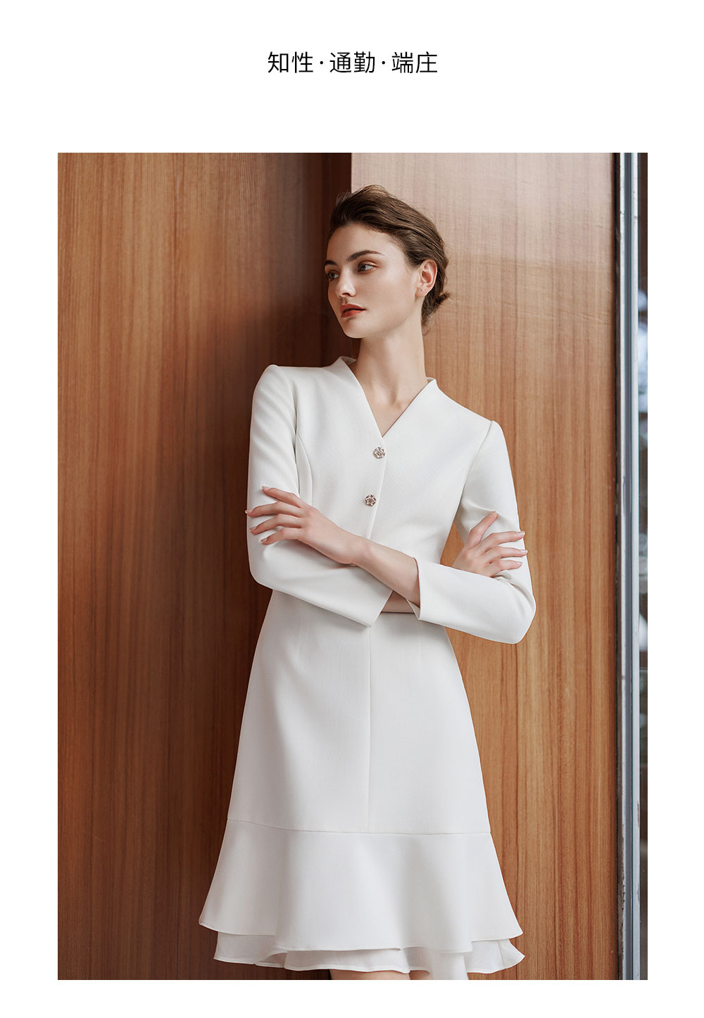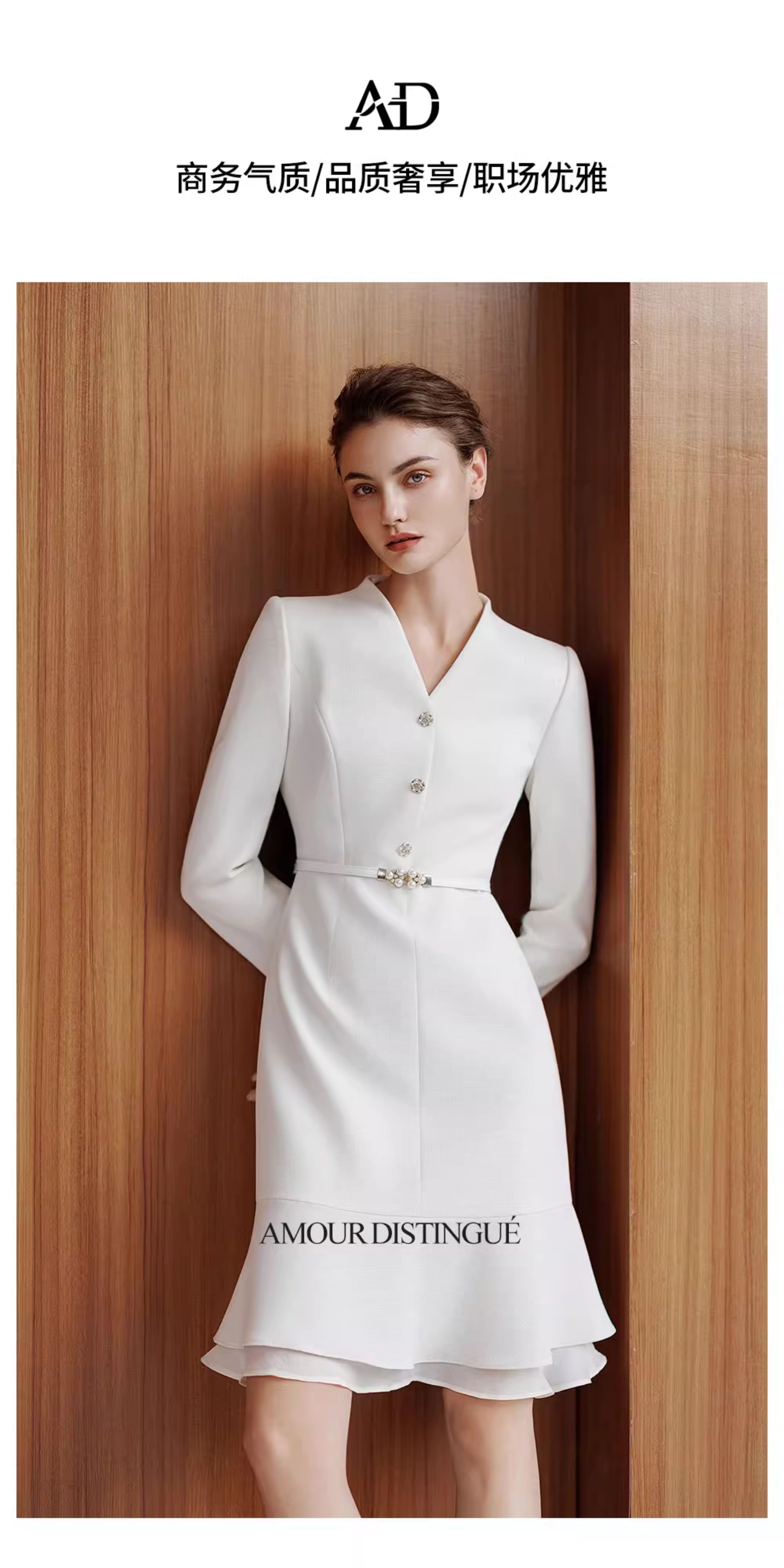 AD出席重要场合的裙子2025新款今年流行爆款米白色收腰西装连衣裙