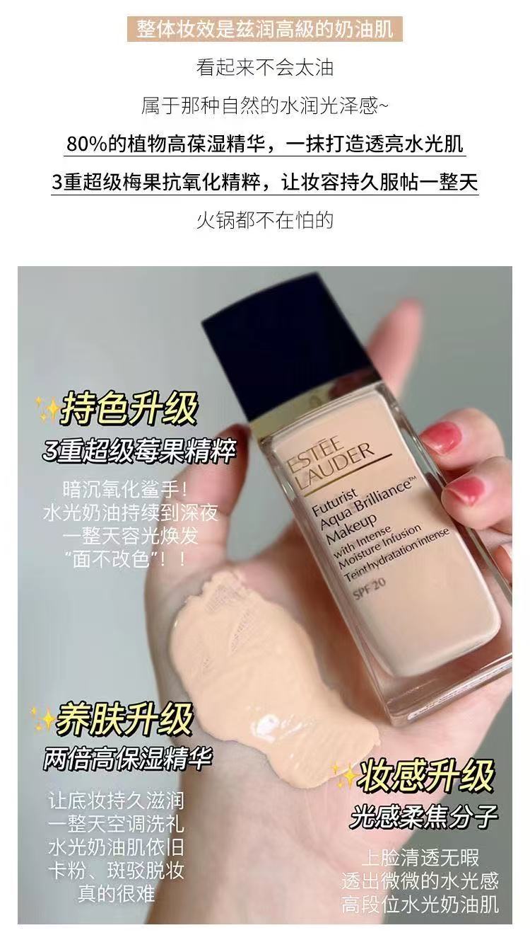 【年终限时大促】Estee Lauder雅诗兰黛沁水粉底液30ml 干皮救星 保湿遮瑕 奶油肌轻透