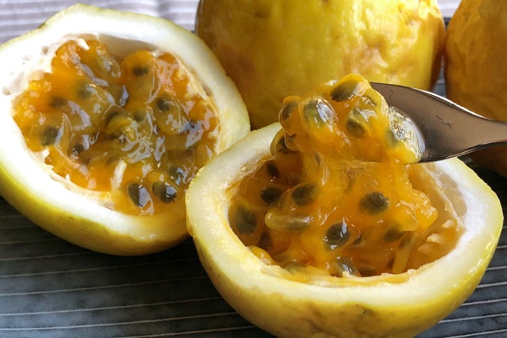 和很多人一样第一次邂逅百香果是在海岛旅游,吃第一口的时候酸到眯眼,但是马上回甘就来了。不过这次是我第一次吃到黄金百香果,口感比以前紫色的感觉更轻盈温和,酸度没有紫果那么冲,完全可以叫它Passionfruit Lite!原来特别爱吃酸的可以把籽嚼碎,那种回味萦绕味蕾。百香果很耐放,室温下放到皮发皱它的甜度会提升。添加到各种甜点果汁茶里味道都会升华。