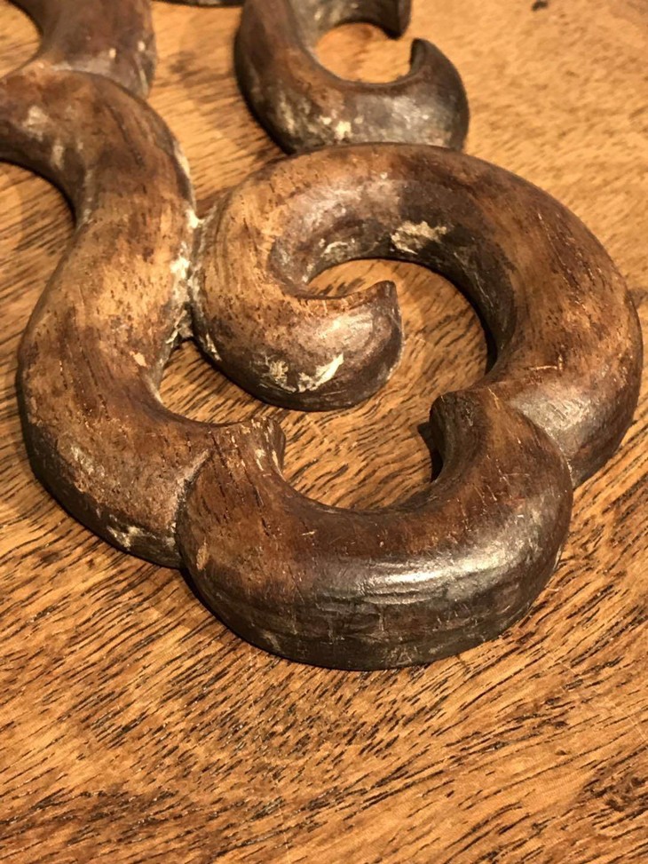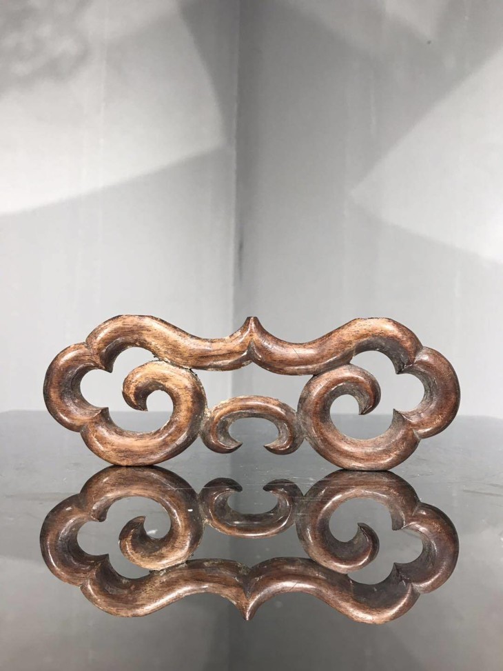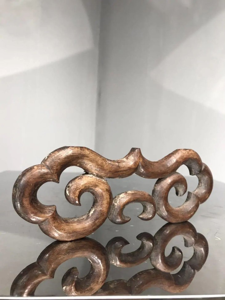 这是一件清代风格黄花梨老家具的部件,以整块海南黄花梨木镂空单面雕刻成简约高雅的如意云吉祥图案,是一形状典雅,曲线独特,雕工琢磨细腻、费工费料之高端黄花梨老家具部件。