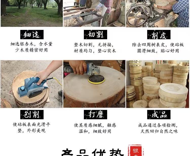 【品名】江苏泰兴银杏木菜板 整木原切 原切带皮款/去皮正圆款 【规格】 原切带皮款/去皮正圆款:直径30cm*厚度5cm 、直径32cm*厚度5cm 、直径34cm*厚度5cm 【产地】国内 【发货包装】独立包装 【发货地】江苏 【发货快递】极兔、邮政随机发 【不发货区域】新疆、西藏、青海、海南、港澳台 【发货时效】48-72小时,周末节假日顺延 |