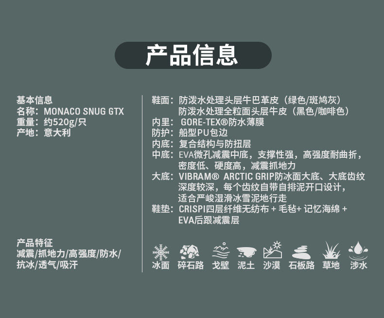 CRISPI 秋冬户外保暖防水防滑徒步登山鞋-MONACO Snug GTX