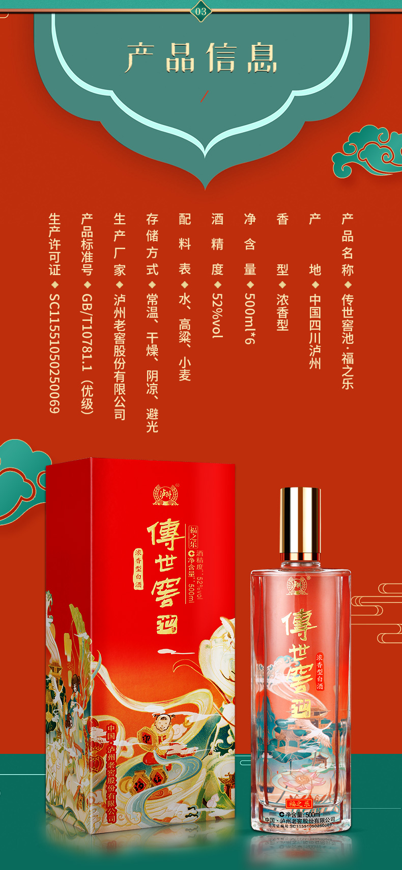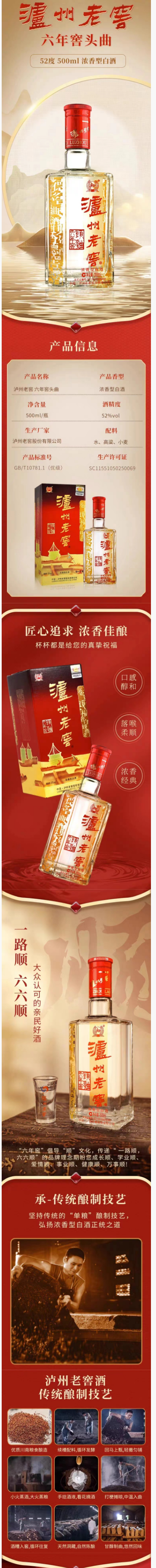 【组合优惠套装】 52度泸州老窖六年窖头曲 500ml*6*2 + 52度 传世窖池福之乐 500ml*6 泸州老窖官方旗舰店