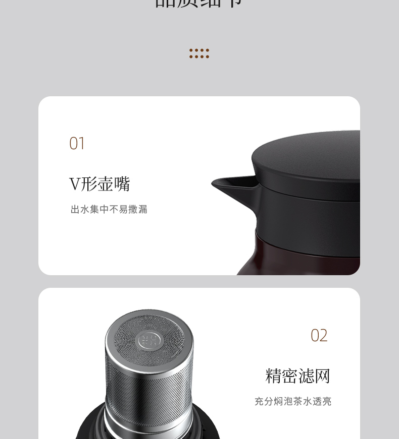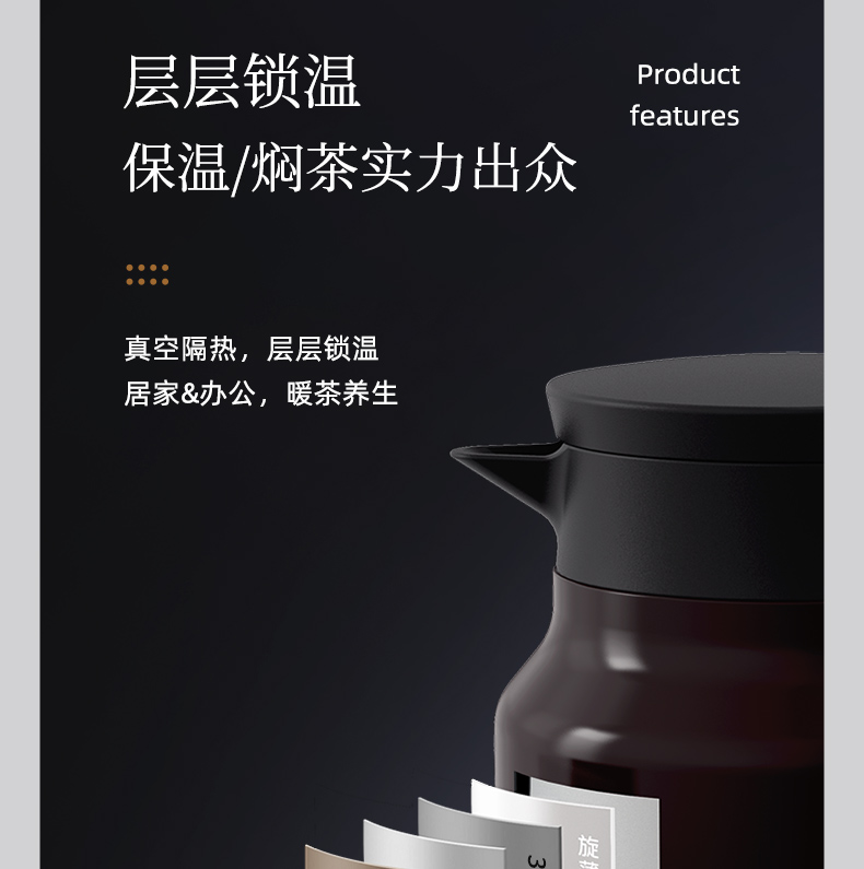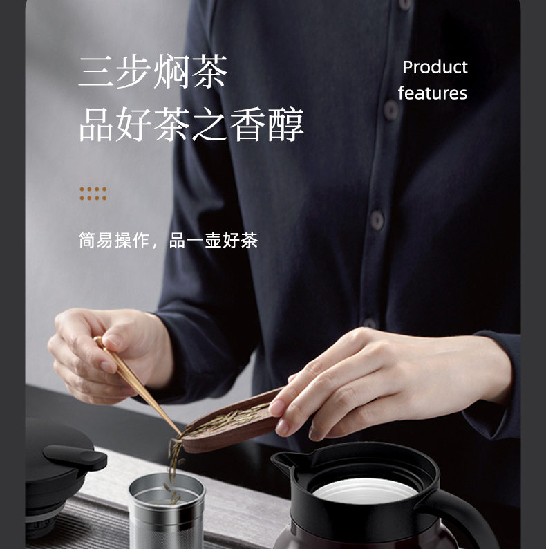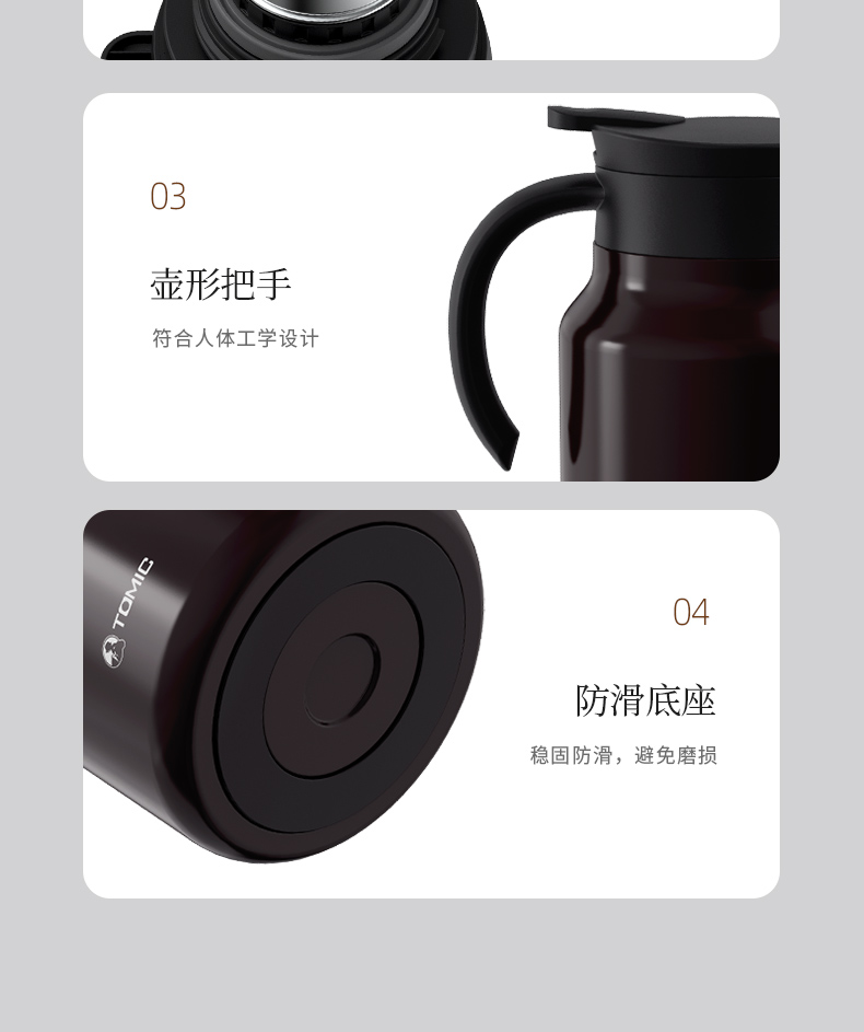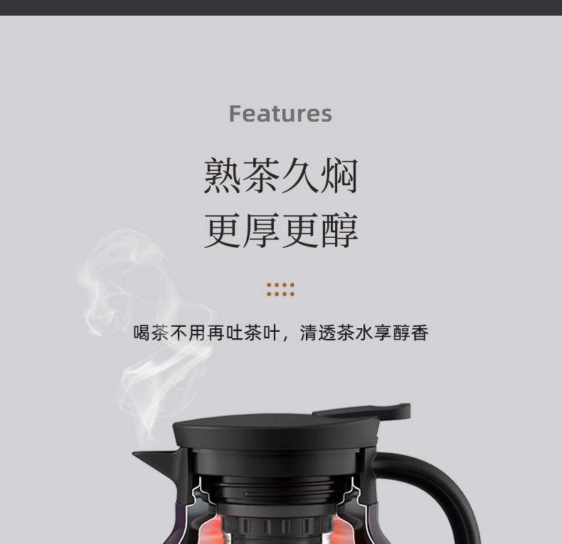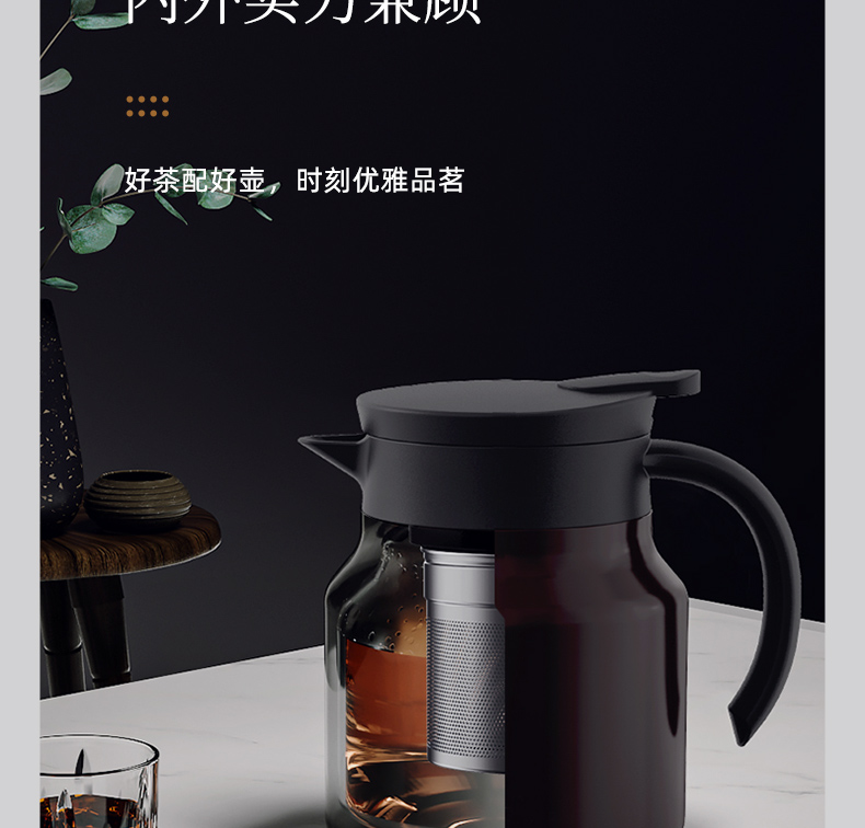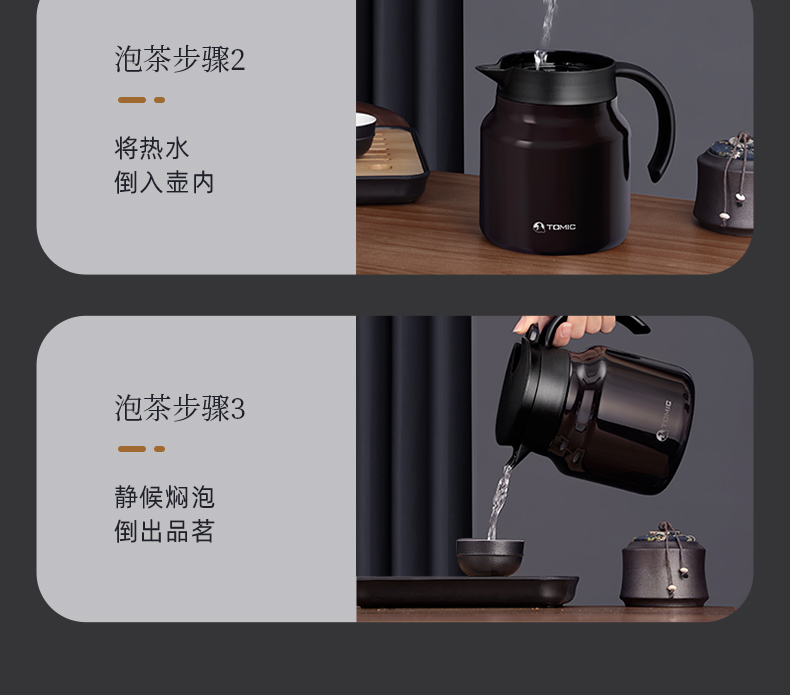 特美刻TOMIC焖茶壶旋薄陶瓷内胆闷泡壶大容量保温壶茶水分离泡茶壶TJ70020 咖啡色
