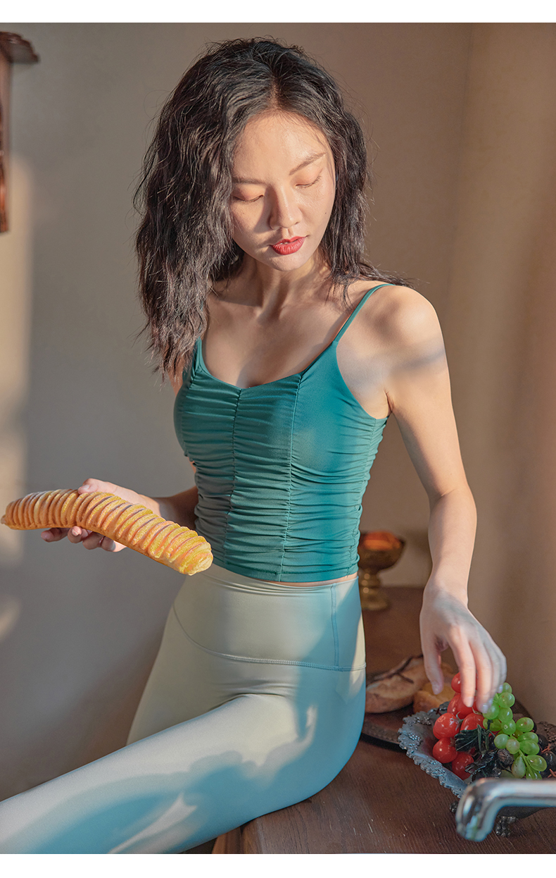 LEANA丽娜【交叉后口袋套装】裸感瑜伽运动套装交叉美背+后口袋九分裤1050+7026