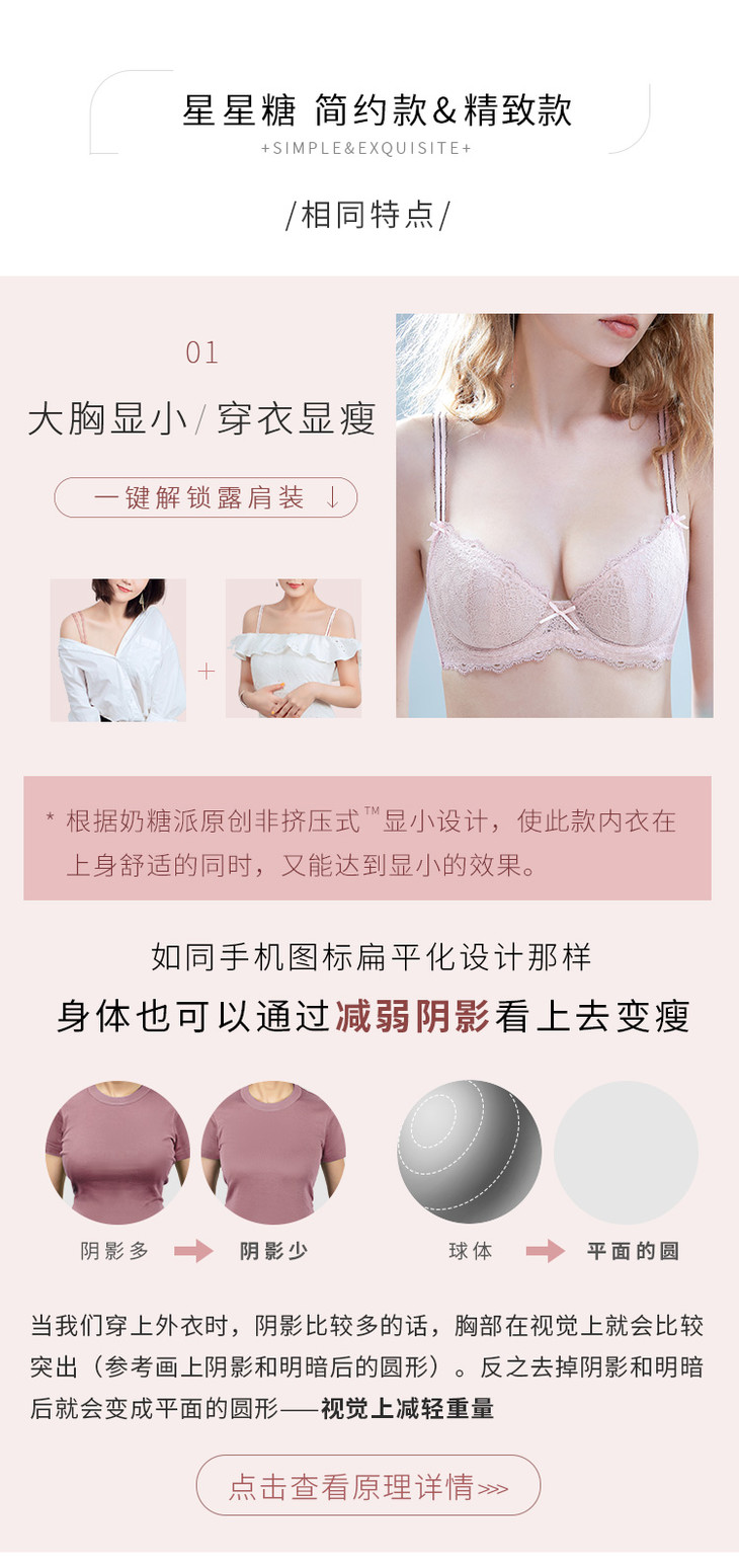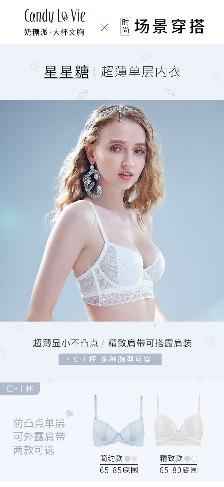 【旧款下架详情页跳转新款】奶糖派2345型超薄单层大胸内衣棉花糖星星糖微甜