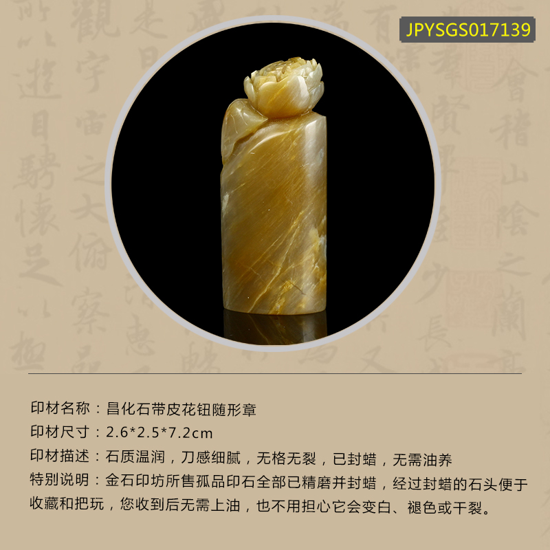 孤品017139-昌化石带皮花钮随形章-2.6*2.5*7.2cm