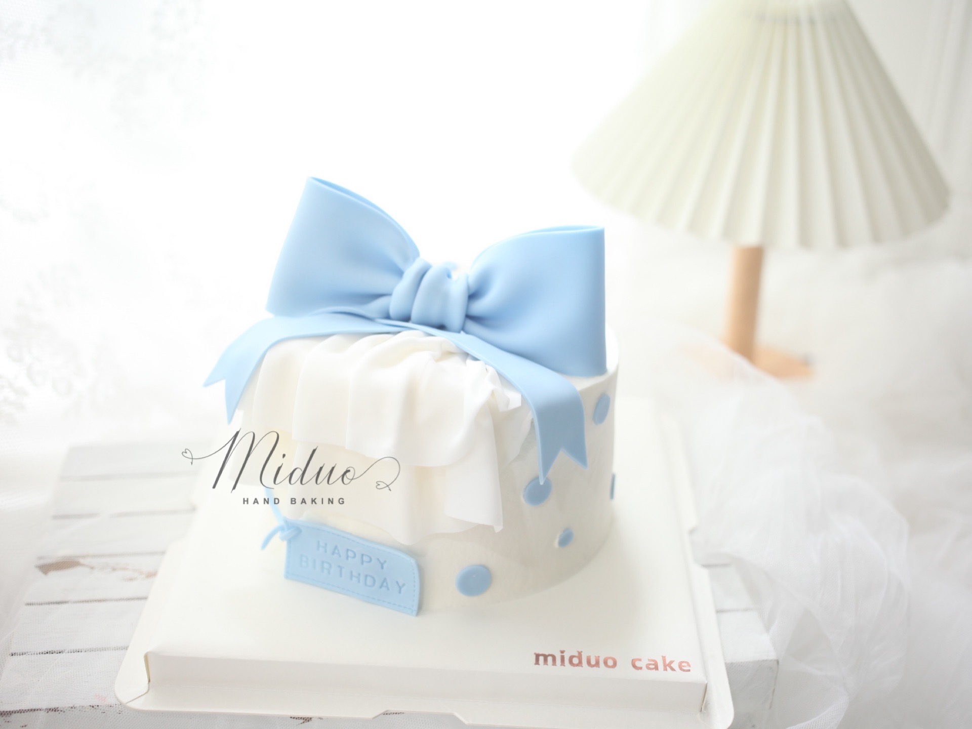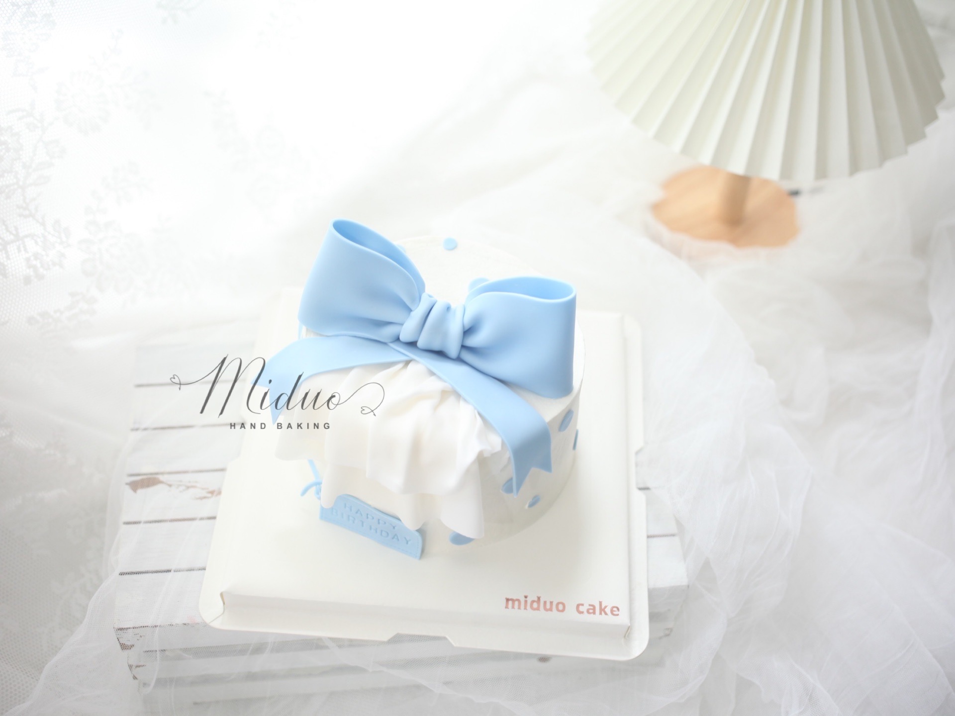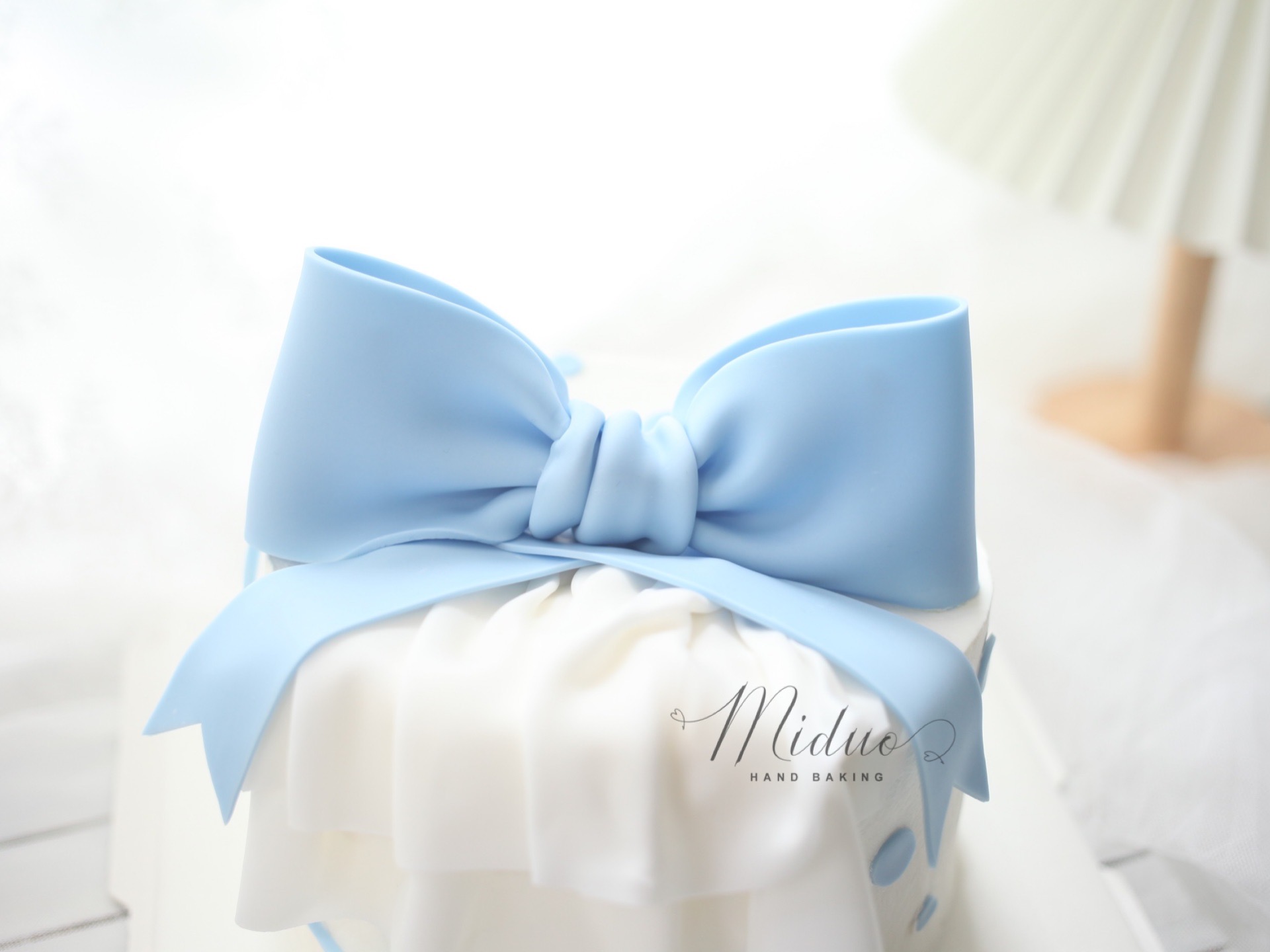 女生蛋糕 翻糖蝴蝶结 天蓝色 甜美裙边 小红书网红款