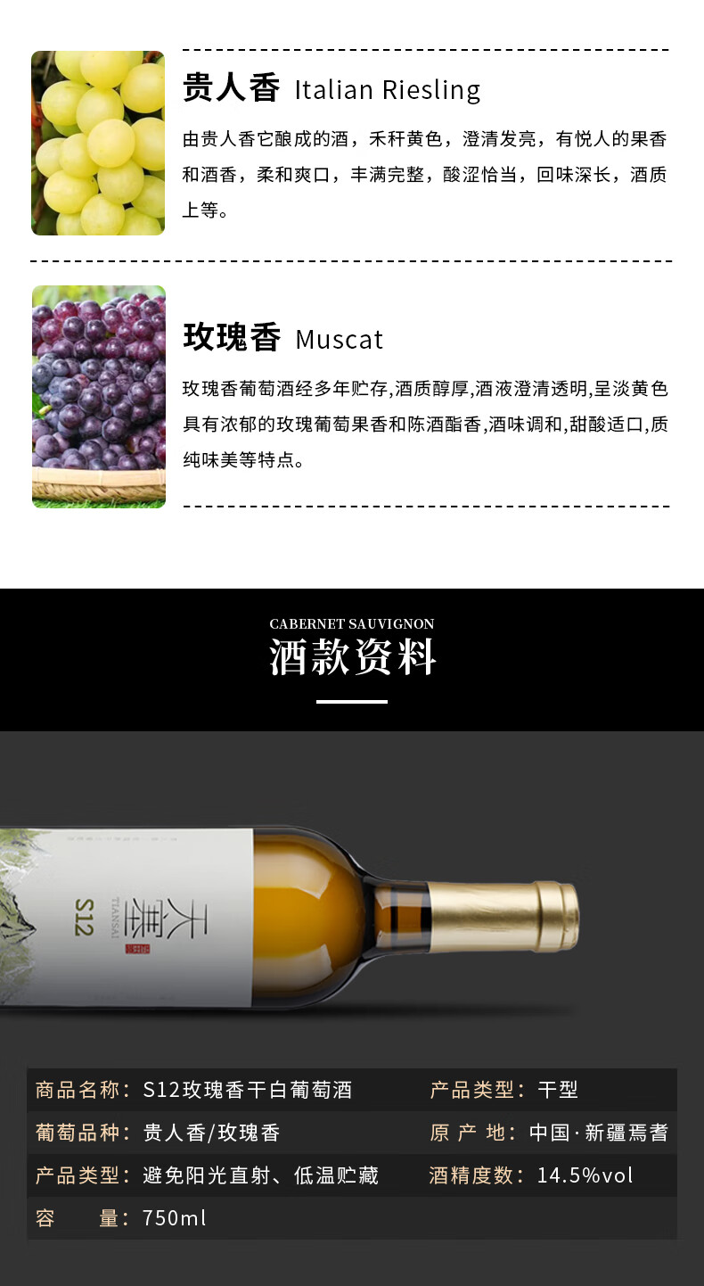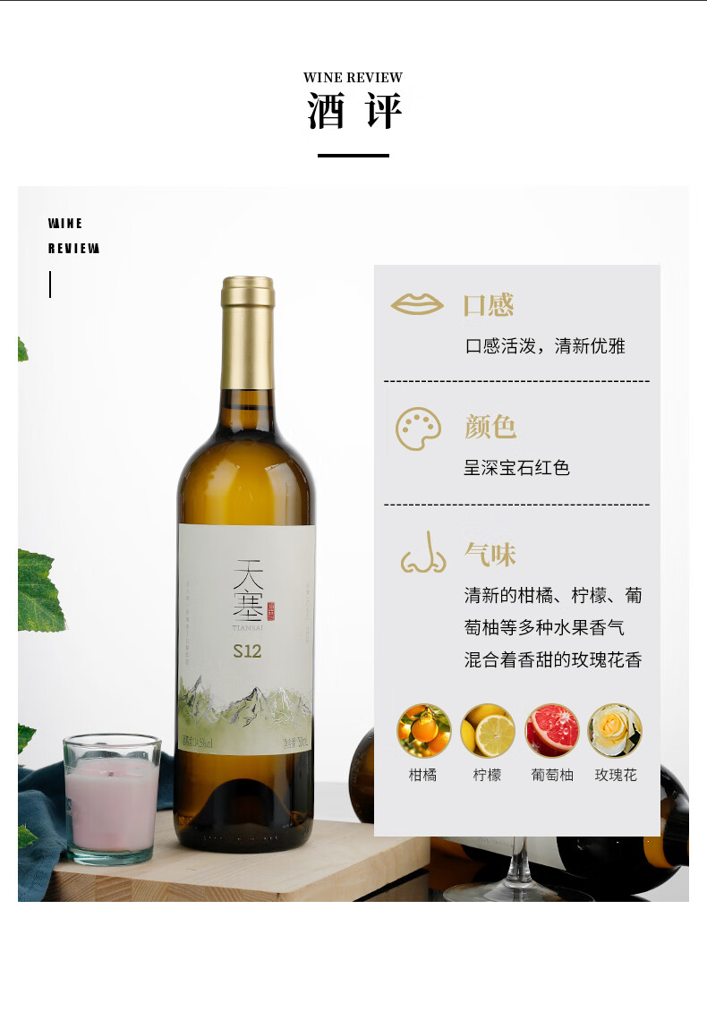 新疆天塞酒庄S12 贵人香/玫瑰香干白葡萄酒