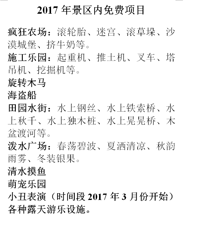 2、门票:所列景点第一大门票(田园熊出没乐园)