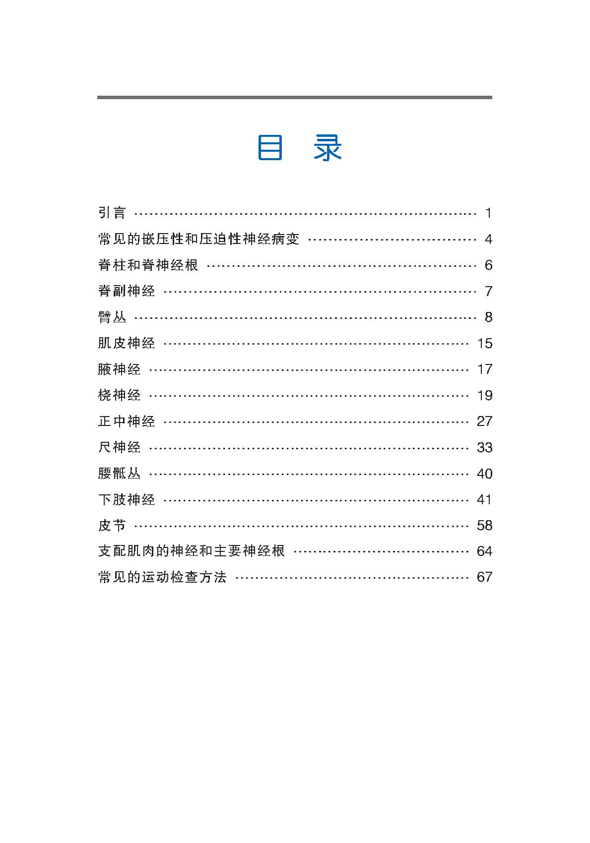 《周围神经系统检查手册》(第6版)主要论述了周围神经的检查手段,包括脊柱和脊神经根、脊副神经、臂丛、肌皮神经、脑神经、腋神经、桡神经、正中神经等,此外,还介绍了常见的嵌压性和压迫性神经病变。书后以简表形式给出了支配肌肉的神经和主要神经根,以及常见的运动检查方法。本书简洁实用,既可以作为初学者的入门读物,也可供专家学者参考。