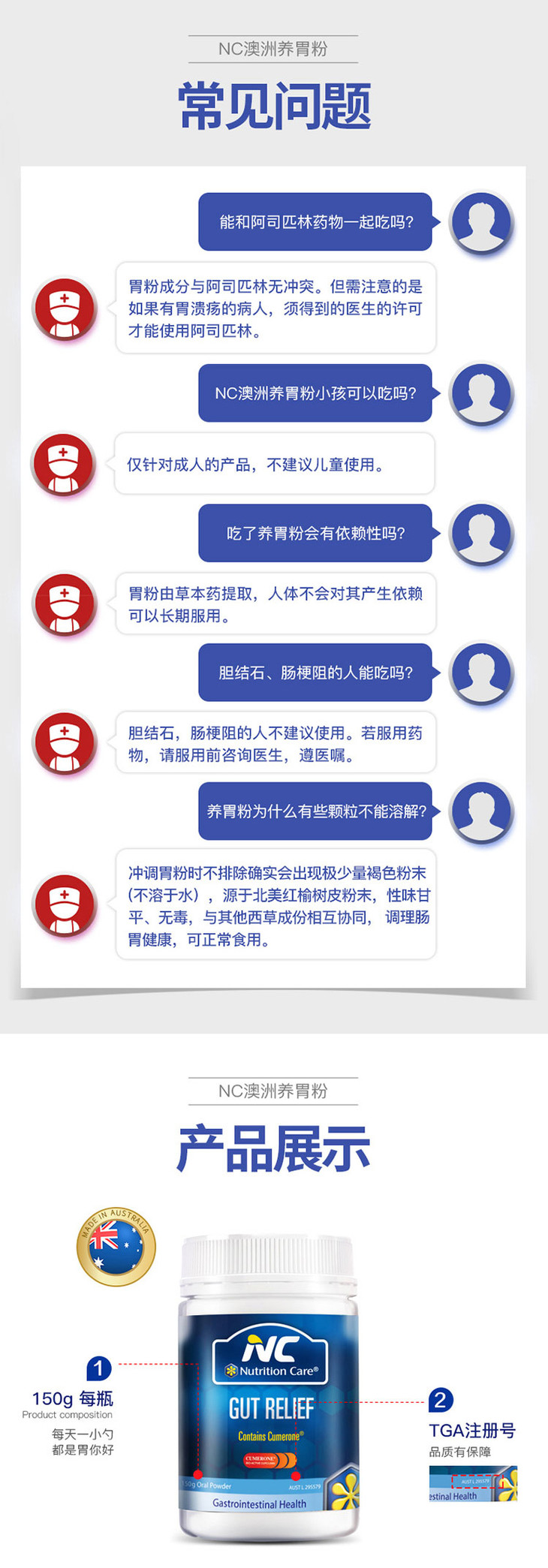 澳洲 NutritionCare 姜黄谷氨酰胺粉 调理肠胃 150g