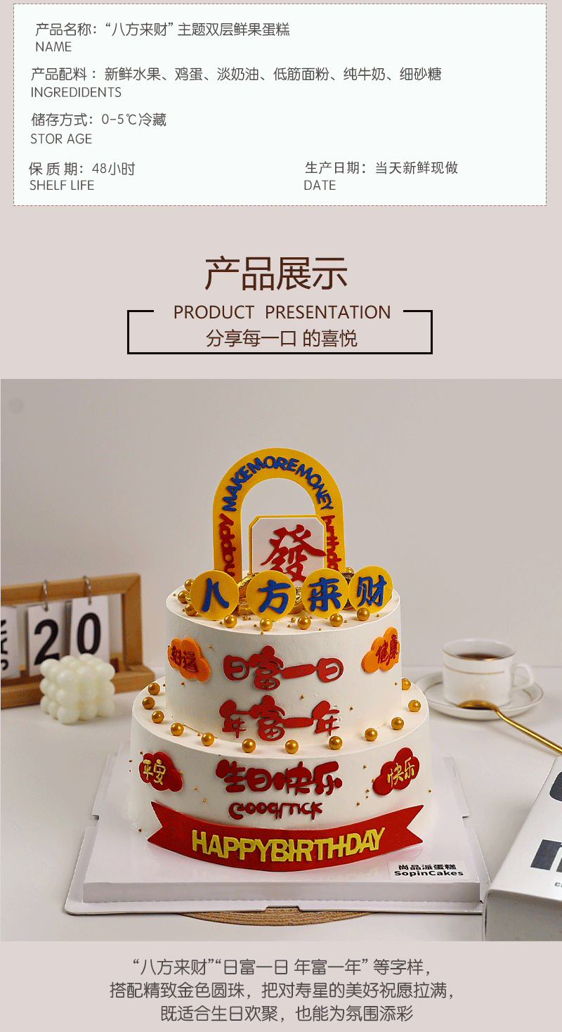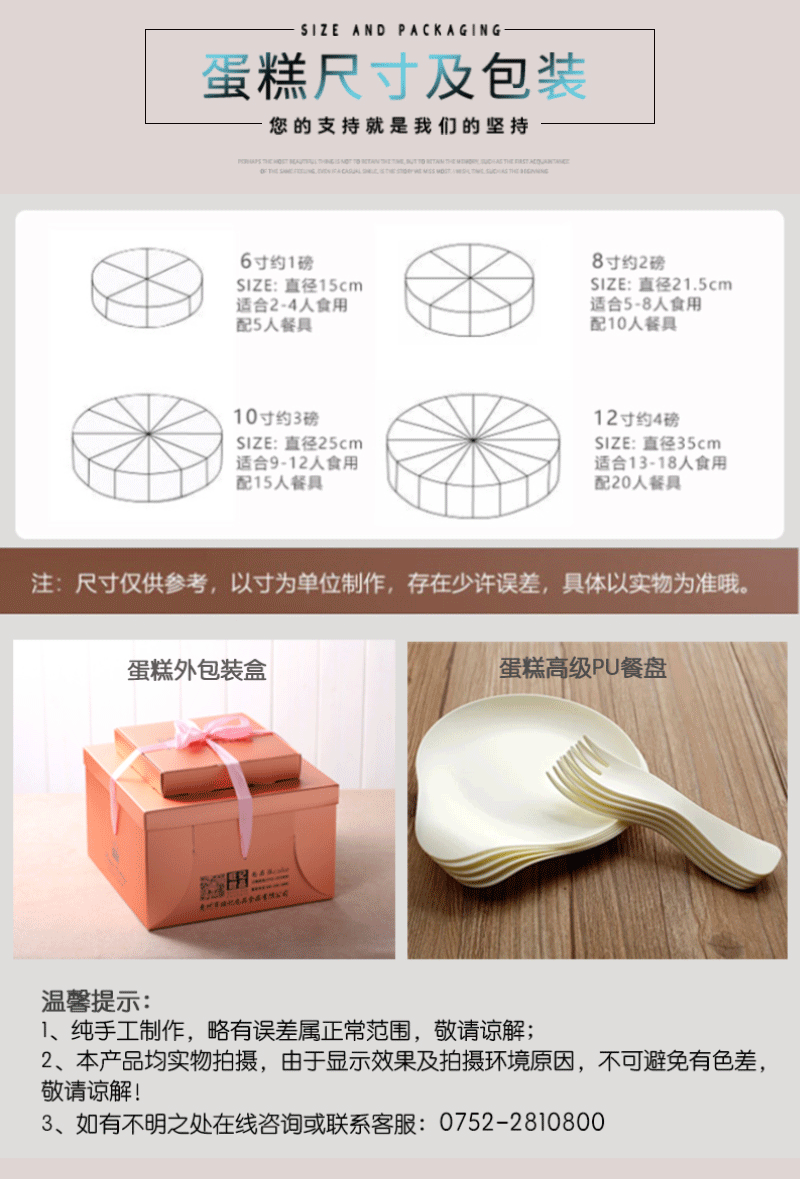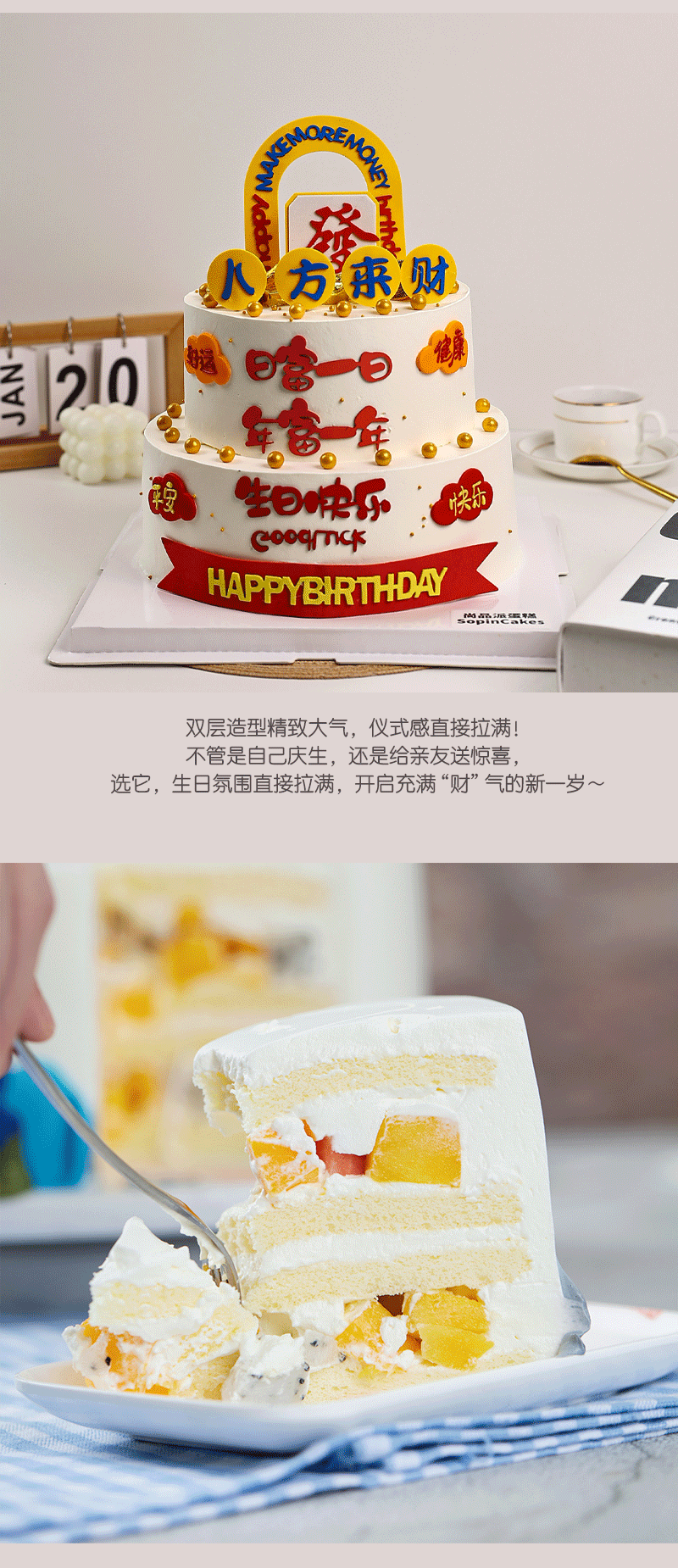- 我们坚持当日接单、新鲜现做,拒绝罐头果肉与植物奶油,让每一口都保留食材本真的鲜活清甜。生活需要一点甜,我们的蛋糕不只是一份甜品,更是传递快乐的仪式感,为你带来视觉与味蕾的双重满足~
