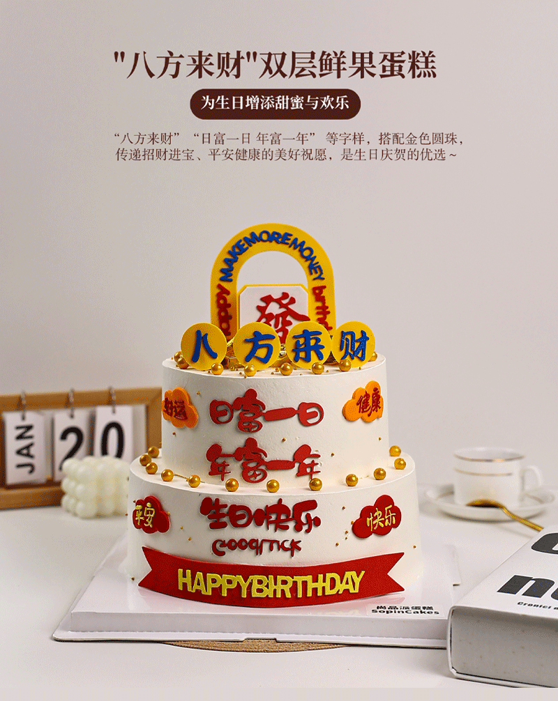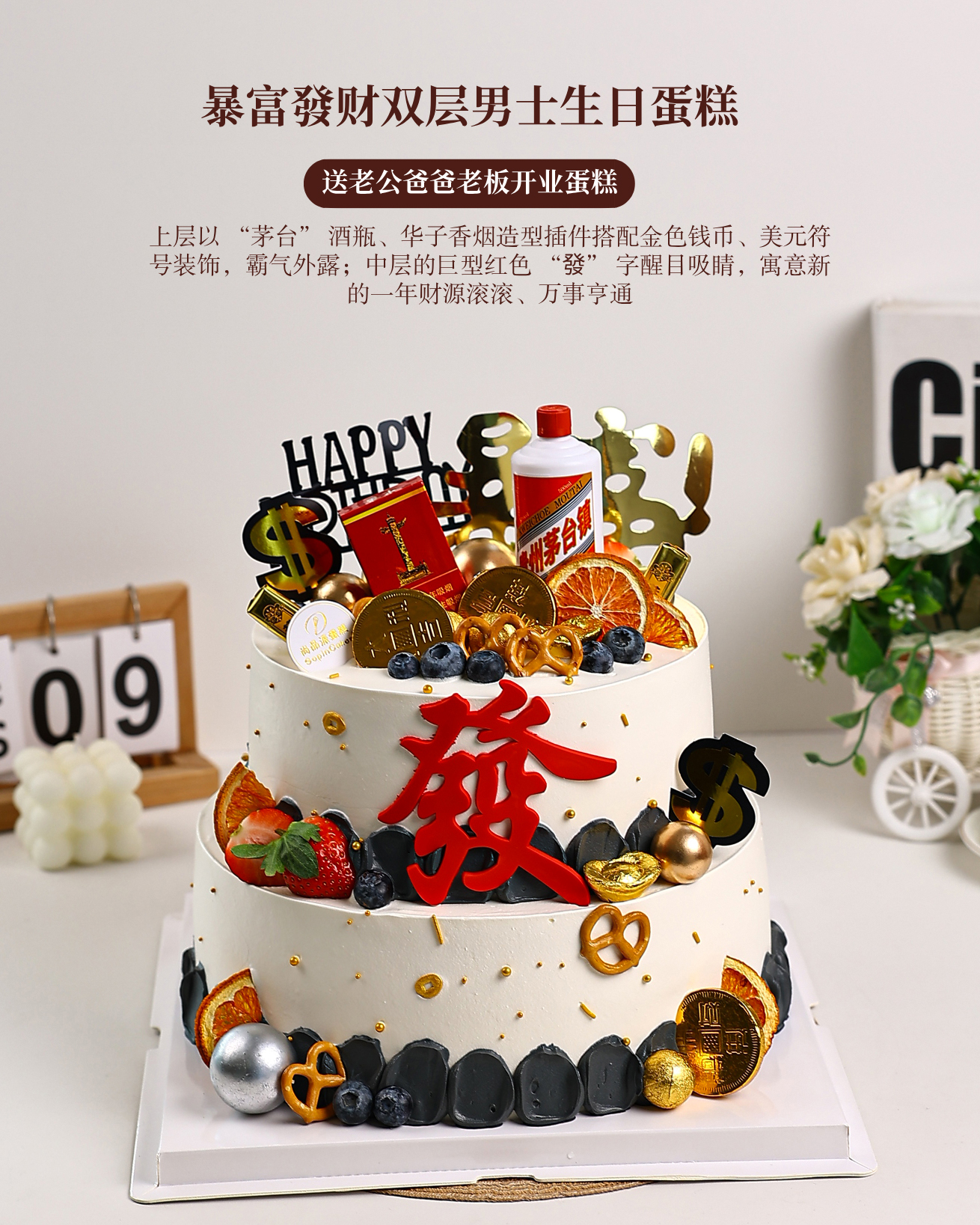 双层男士发财暴富款主题生日蛋糕,让生日既显用心,又充满 “财气”,开启财运亨通的新一岁【惠州】