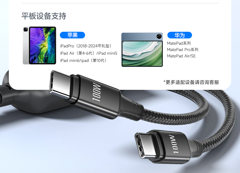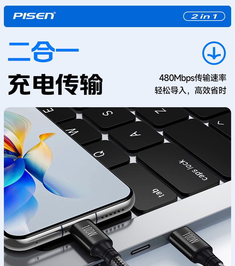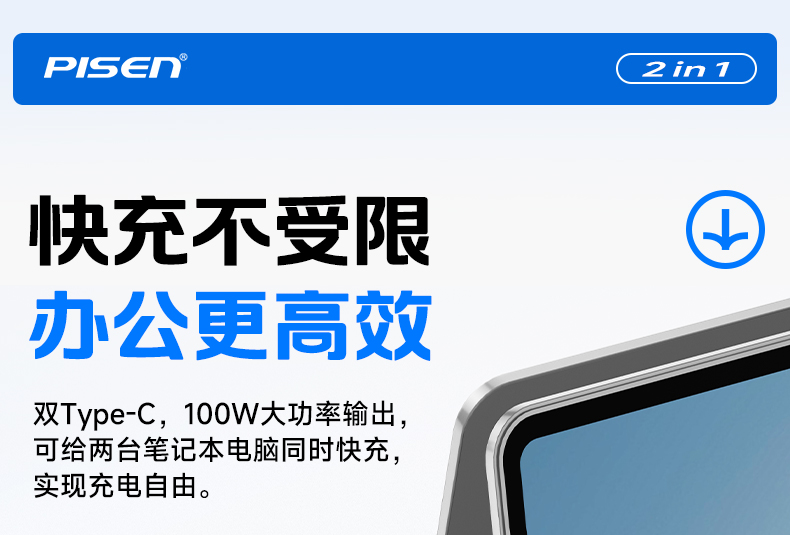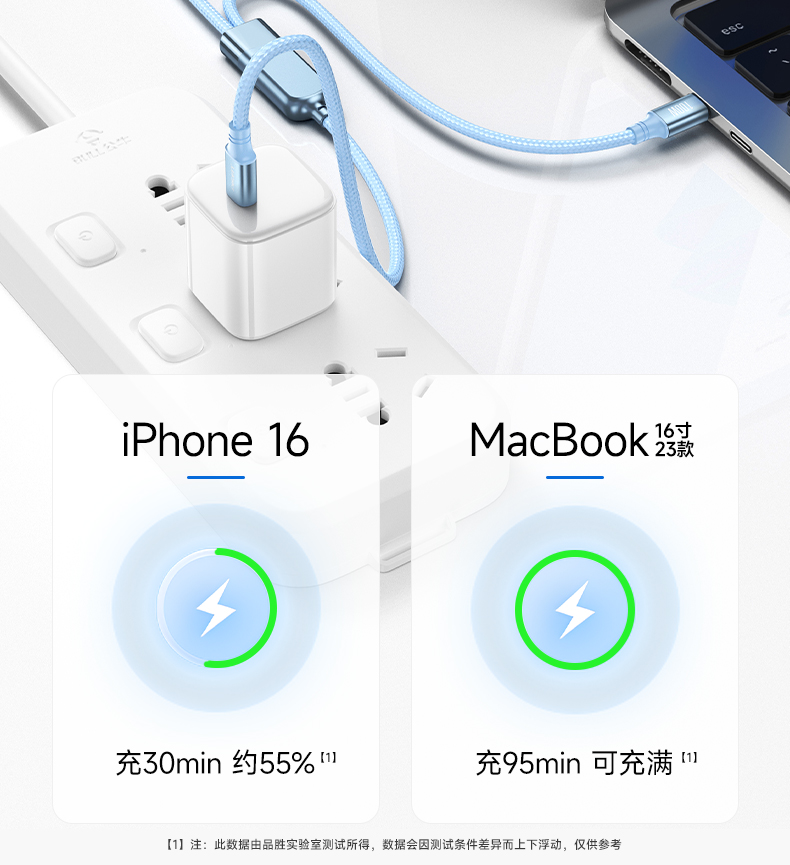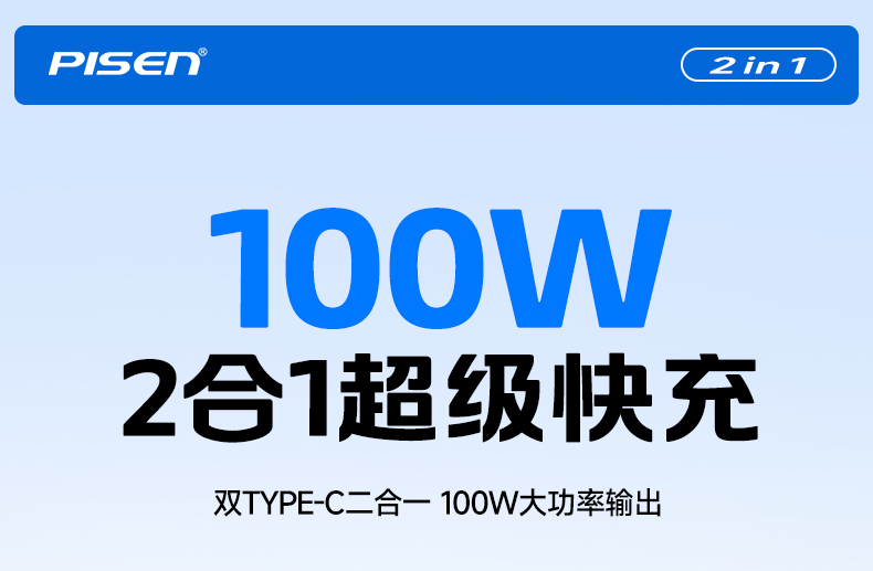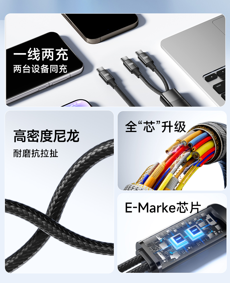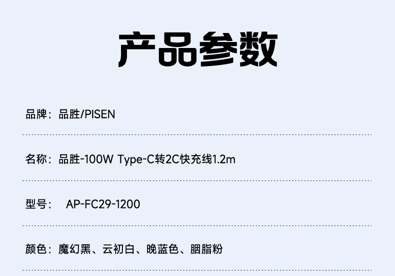 品胜 100W Type-C转2C快充线1.2m 支持PD1000W快充 支持苹果16充电手机笔记本