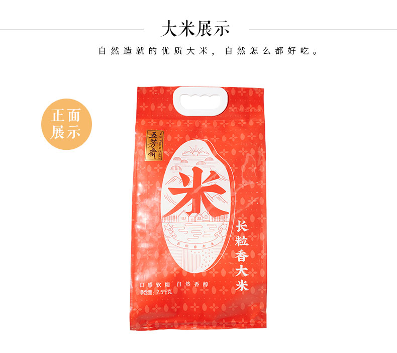 五芳斋 真空长粒香大米袋装 颗粒饱满 软糯回甘 真空包装 防潮防虫 2.5公斤/袋