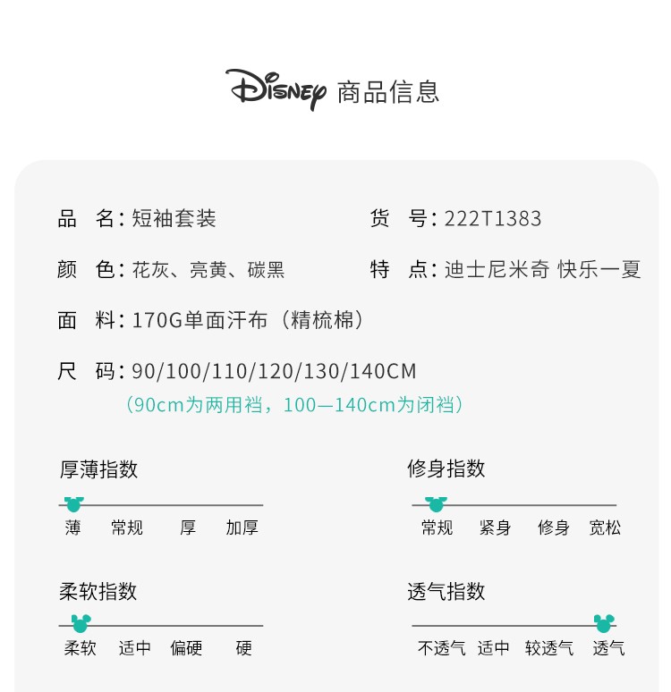 迪士尼童装 男童短袖套装夏季新款男孩运动帅气儿童两件套装222T1383