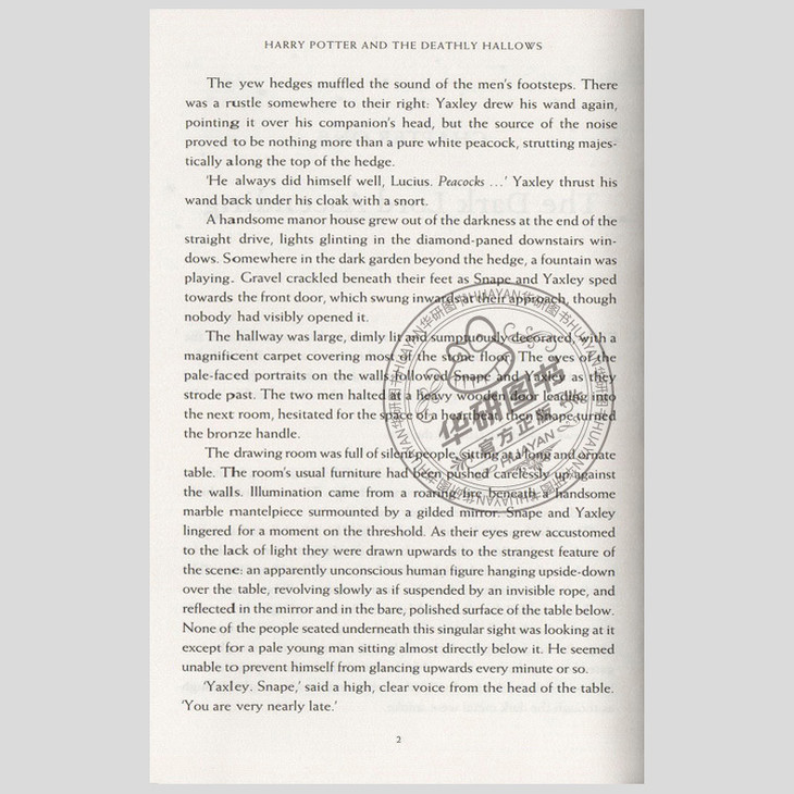 Somewhere in the dark garden beyond the hedge, a fountain was playing. Gravel crackled beneath their feet as Snape and Yaxley sped towards the front door, which swung inwards at their approach, though nobody had visibly opened it.