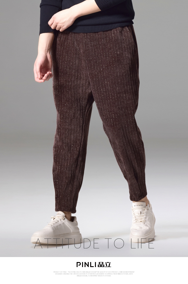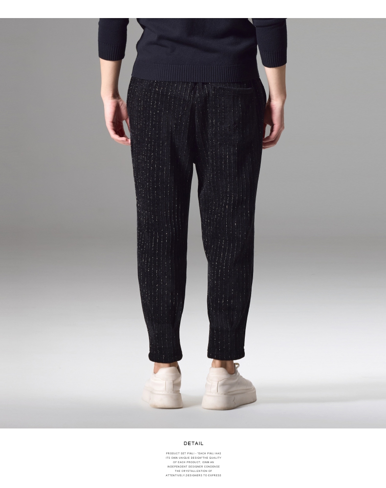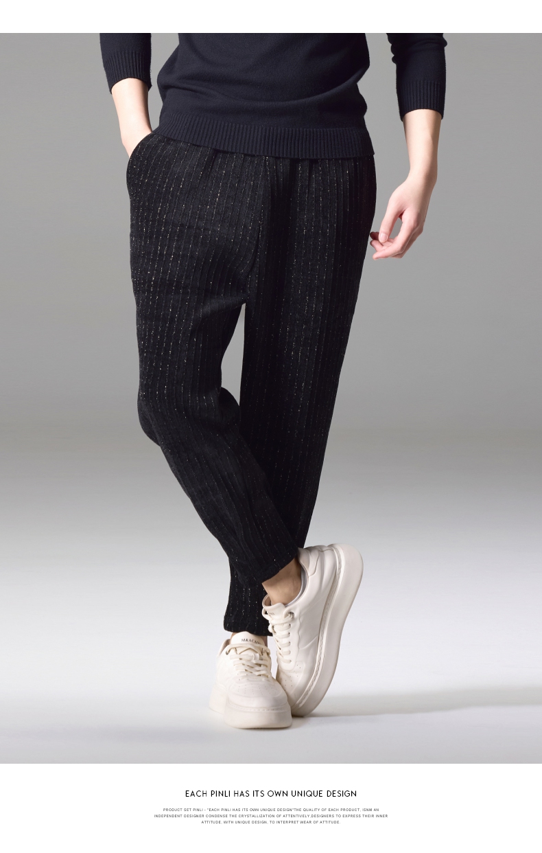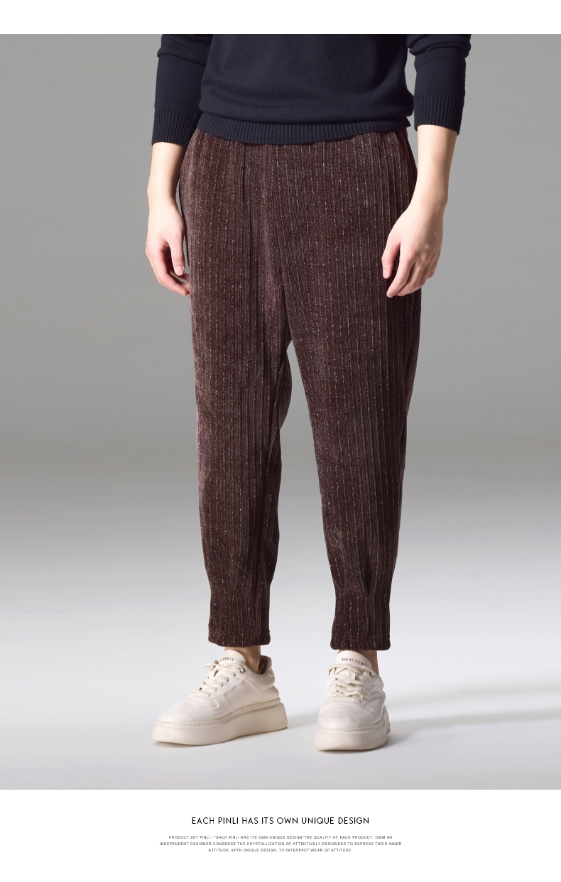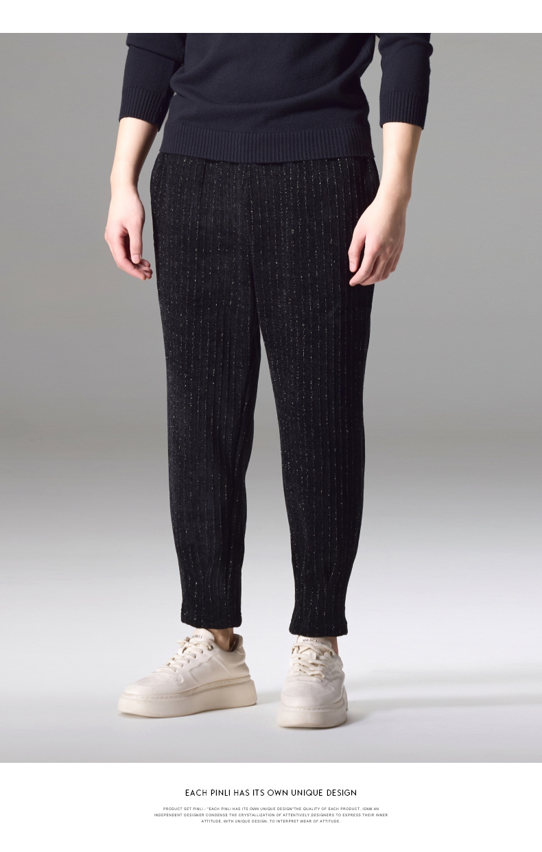 PINLI品立2024秋季新款男雪尼尔亮丝条纹直筒小脚休闲九分裤子潮B243117048