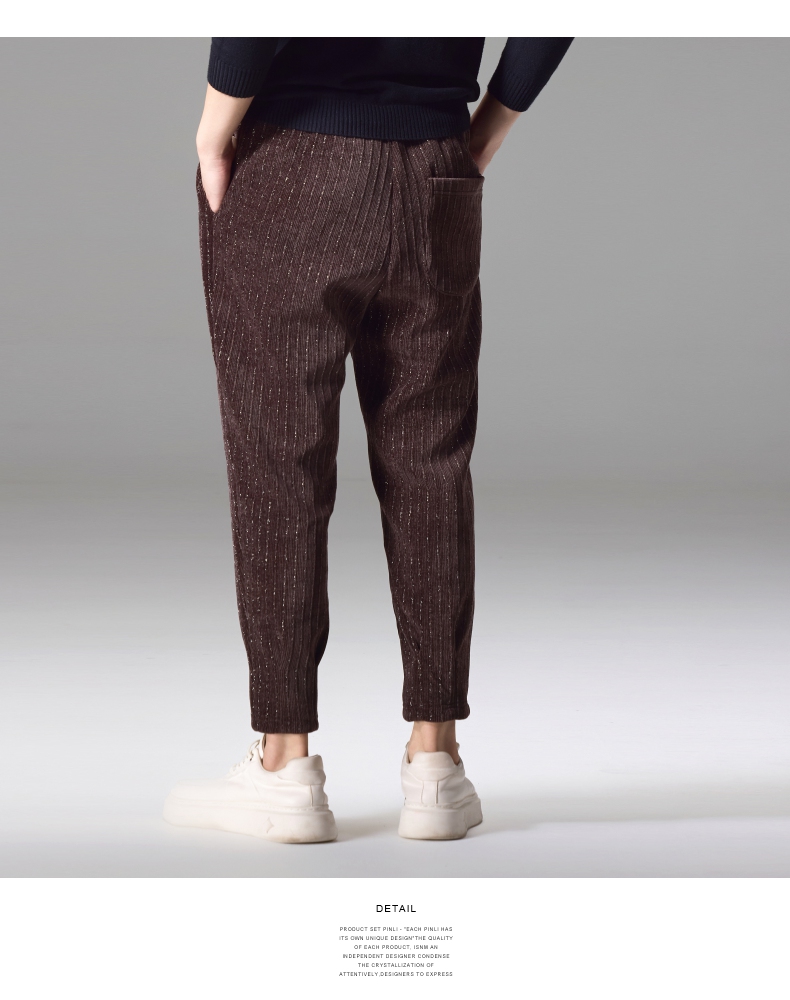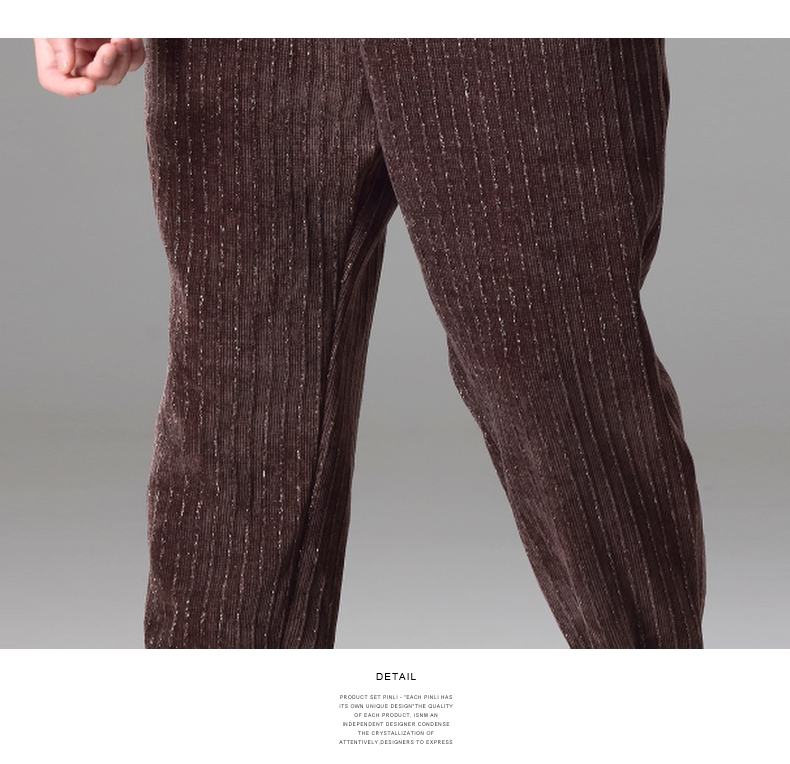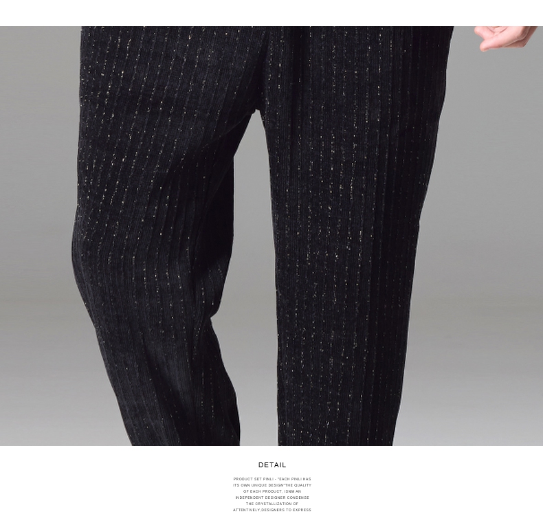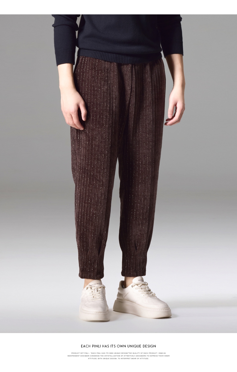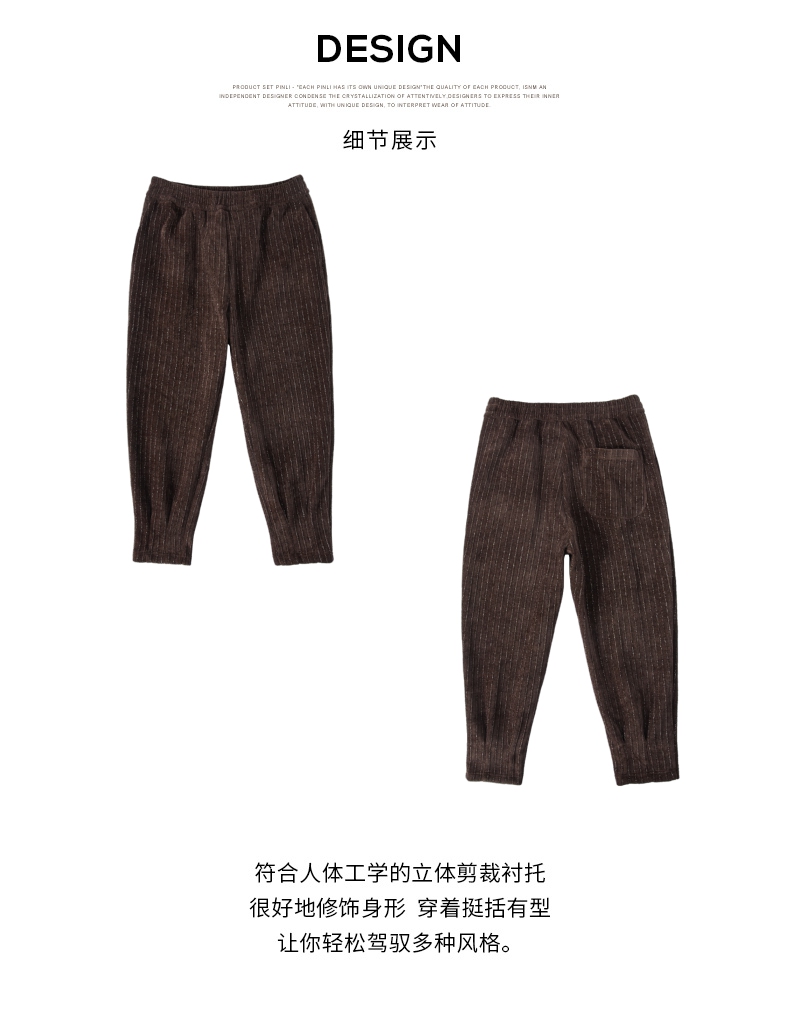 PINLI品立2024秋季新款男雪尼尔亮丝条纹直筒小脚休闲九分裤子潮B243117048