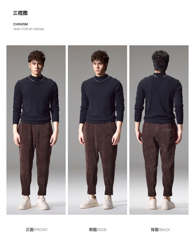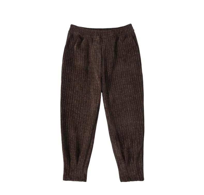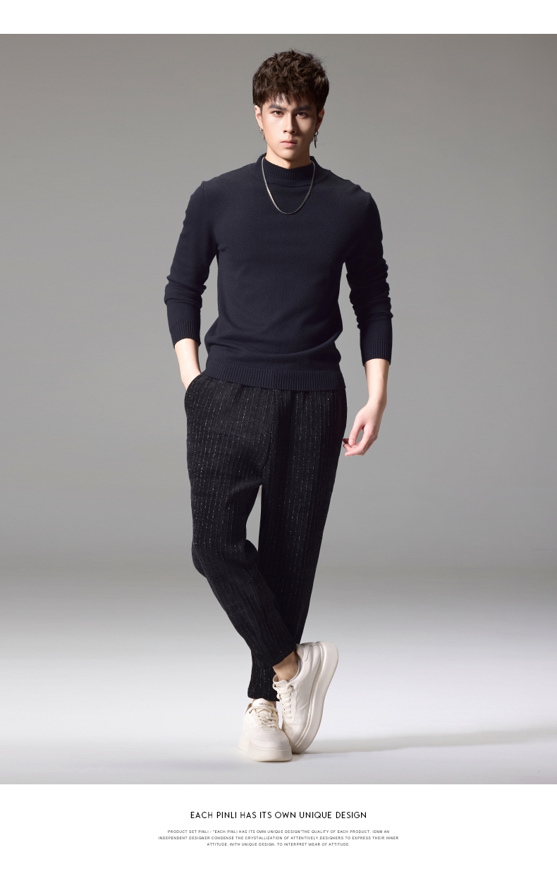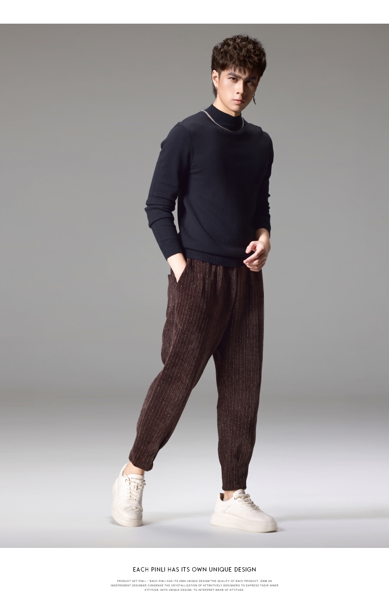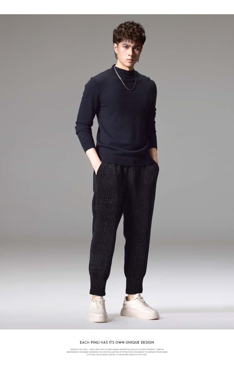 PINLI品立2024秋季新款男雪尼尔亮丝条纹直筒小脚休闲九分裤子潮B243117048