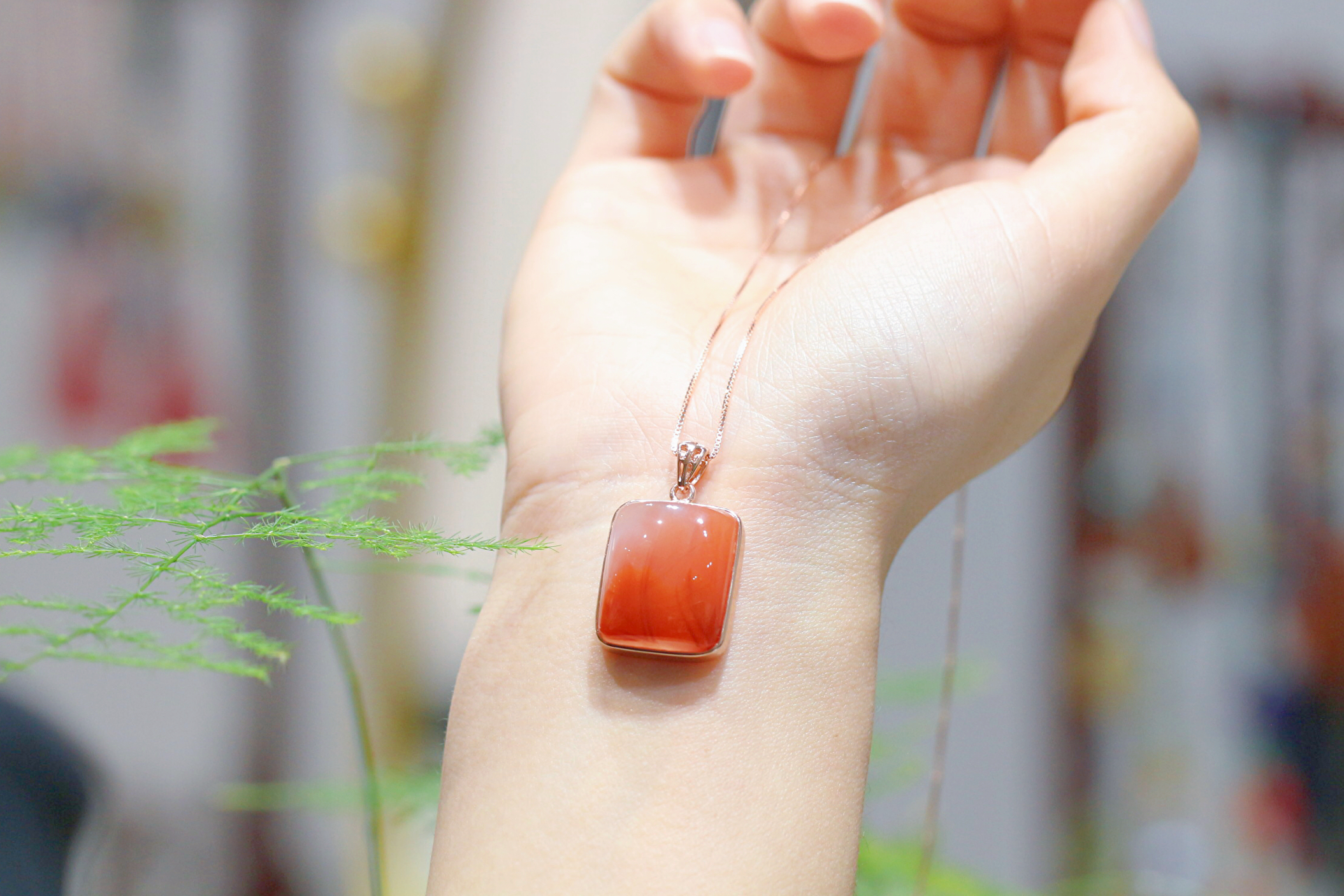 南红冰飘吊坠,冰透水润,晶莹剔透,色泽鲜艳靓丽,美艳动人,925银镶,精致好看,当锁骨链优雅迷人。